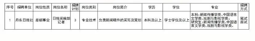 附件1 丹东日报社2022年面向普通高校直招应届毕业生岗位计划信息表