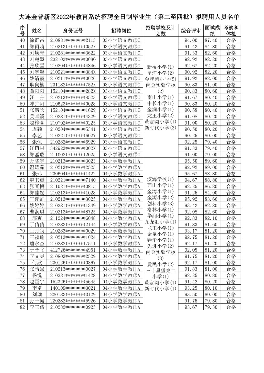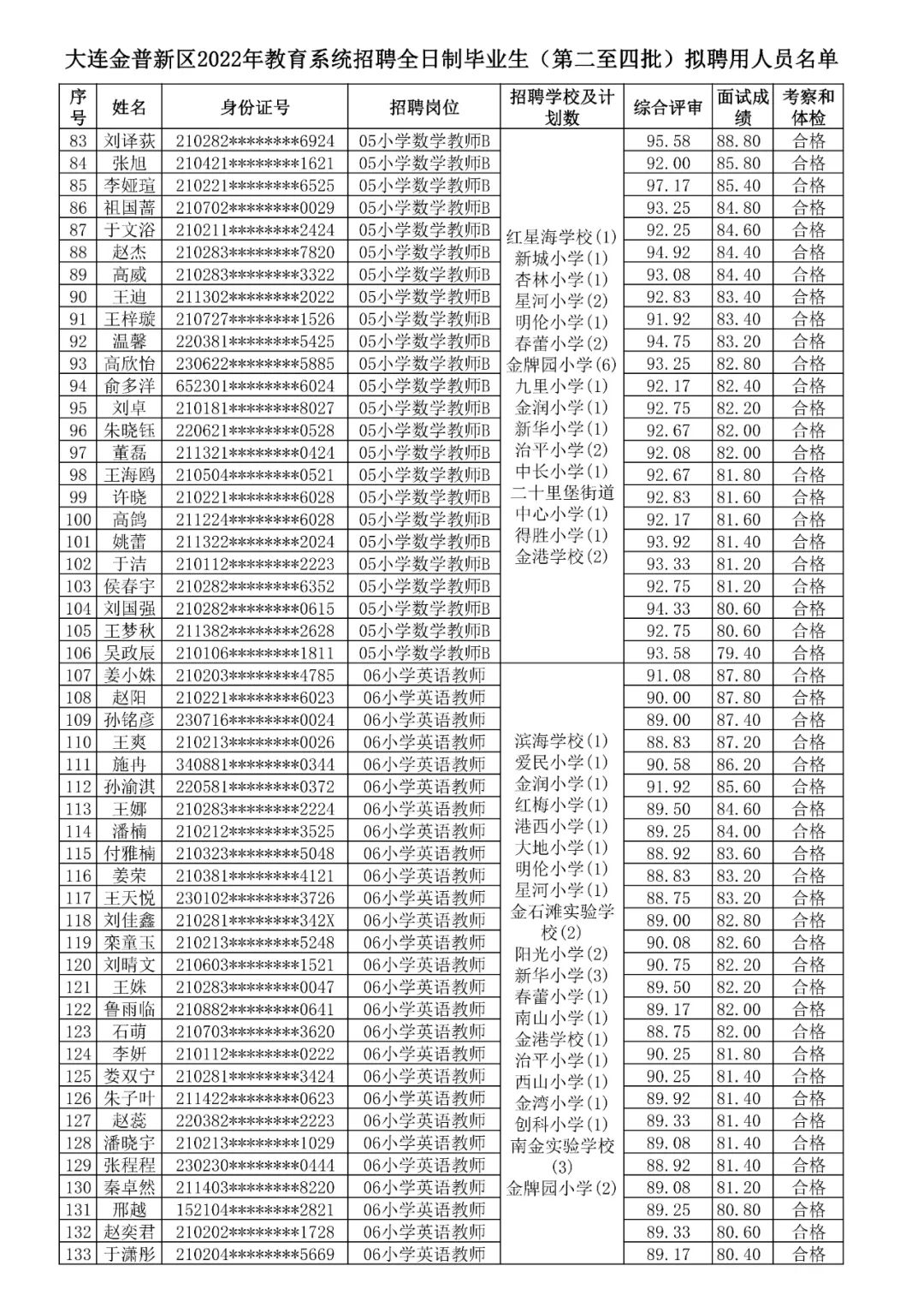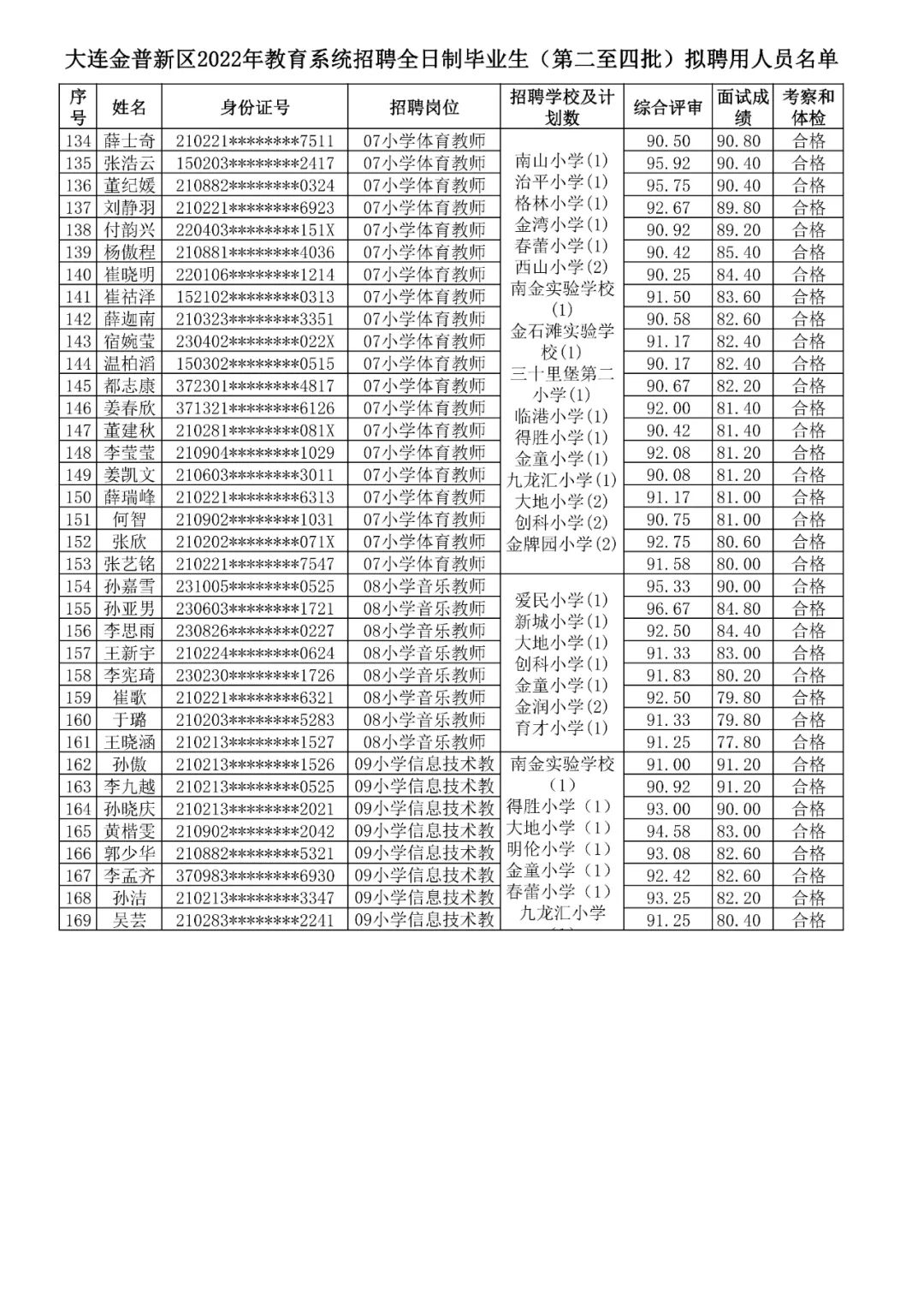 附件:大连金普新区2022年教育系统招聘全日制毕业生(第二至四批)拟聘用人员名单