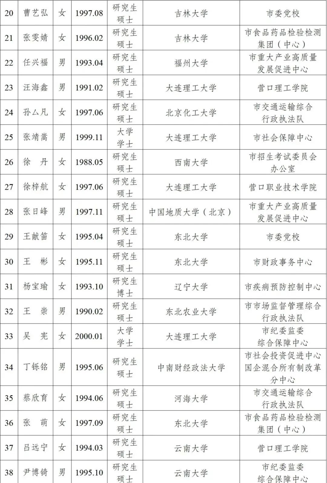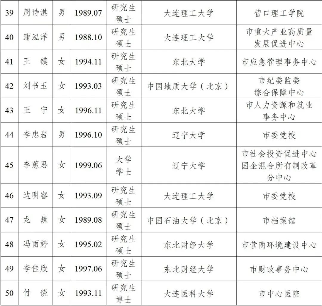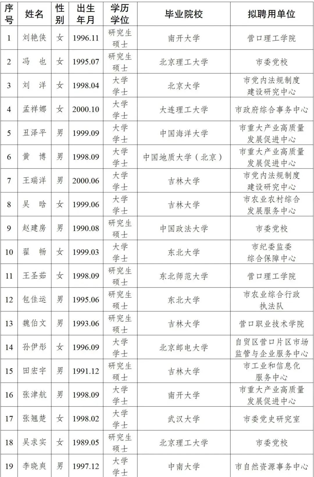 关于2022年营口市“高校优才选招计划”拟聘用人员的公示