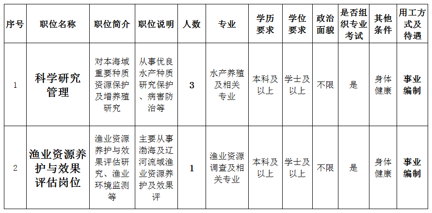 现将中国水产科学研究院营口增殖实验站2023年度校园招聘有关事项公告如下: