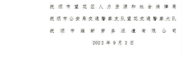 根据工作需要为加强社会治安防控体系建设,经有关部门批准,抚顺市公安局交通警察支队望花交通警察大队拟向社会公开招聘警务辅助人员10名。警务辅助人员(以下简称“辅警”)用工形式为劳务派遣制,不具有人民警察身份,具体招聘事宜如下: