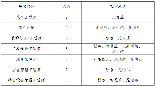 二、招聘岗位基本要求 1.40周岁以下(1980年1月1日以后出生),特殊岗位年龄可酌情放宽; 2.大学本科及以上文化程度,英语四级及以上水平; 3.具有同岗位条件优秀者,上述条件可适当放宽。 4.有意向从事国际业务,并能够适应海外项目工作环境; 三、招聘岗位具体要求 1.采矿工程师岗位要求: 1)履历要求:至少1个项目的完整工作经历 2)岗位要求: 1.熟悉矿山的开采技术、开拓方法、井巷掘井、供电系统、通风系统、运输系统以及矿山的地质、设备情况; 2.参与矿山重大设计的审查,负责编排矿山采掘进度计划,指导矿山编制采掘计划、参与编制公司采掘计划,并监督计划实施;负责监督和控制矿山安全生产体系,落实安全生产责任书的各项指标,确保安全生产 3.负责矿山采矿生产成本控制、技术经济指标控制。 2.商务经理岗位要求: 1)专业及学历要求:水利水电、土木工程、工程管理等相关专业大学本科及以上学历,211/985院校优先; 2)语言要求:英语四级以上。 3)履历要求:具有5年以上海外相关工作经验,至少1个项目的完整工作经历; 4)其他要求:熟悉FIDIC合同条款,具有较强的合同文件编写能力、谈判能力和文字表达能力;较强的招投标管理、合约管理、成本控制能力。 3.现场总工/工程师岗位要求: 1)专业及学历要求:水利水电、土木工程、道路与桥梁等相关专业大学本科及以上学历,211/985院校优先; 2)履历要求:现场总工要求具有5年以上海外工程管理现场工作经验,至少一个碾压混凝土坝施工技术管理经验;现场工程师要求具有2年以上海外工程管理现场工作经验。 3)工作能力:能熟练使用进度计划软件、CAD等工程专业软件;有较强的施工管理能力,具备协调沟通与判断分析能力,工作耐心、组织意识强、做事讲究原则。 4.工程造价工程师岗位要求: 1)专业及学历要求:水利水电、土木工程、道路或桥梁工程、工程管理、工程造价、项目管理等相关专业大学本科及以上学历; 2)履历要求:具备2年及以上海外项目相关工作经验,具备一个以上项目的完整结算工程量核对经历者优先; 5.测量工程师岗位要求: 1)专业及学历要求:测量相关专业大学本科及以上学历,211/985院校优先; 2)履历要求:具有2年以上海外工程管理现场工作经验; 6.安全管理工程师岗位要求: 1)专业及学历要求:安全管理相关专业大学本科及以上学历,211/985院校优先; 2)履历要求:具有2年以上海外工程管理现场工作经验; 3)持安全生产考核合格证C类及以上证书,工程师及以上职称。 7.物资设备管理工程师岗位要求: 1)专业及学历要求:相关专业大学本科及以上学历,211/985院校优先; 2)履历要求:具有2年以上海外工程管理现场工作经验; 四、招聘原则 聘用人员试用期为6个月。 聘用期间,表现优异者,根据公司需要及个人意愿并履行程序后,可正式调入。 五、薪酬待遇 原则上遵循市场规则,根据本人工作资历、能力、具体工作岗位等确定。 六、招聘程序 1.招聘工作按照自愿报名、资格审查、面试、组织考察、体检、聘用的程序进行。 2. 应聘人员请将本人学历及学位证书、专业技术资格证书与应聘岗位相关的证明材料(扫描原件)发送到邮箱:6jsunnanan@powerchina.cn 3. 邮件主题:“姓名+应聘岗位+意向国别”(“意向国别”为必写项,请务必标注)。 4. 联系人(工作日8:30-17:00):孙女士 18740009559 七:报名时间 2022年08月01日-2023年08月01日 对应聘人员资格条件进行审核初筛,择优确定入选人员,以电子邮件方式通知进入下一招聘环节,未入选应聘人员不再另行通知。 |