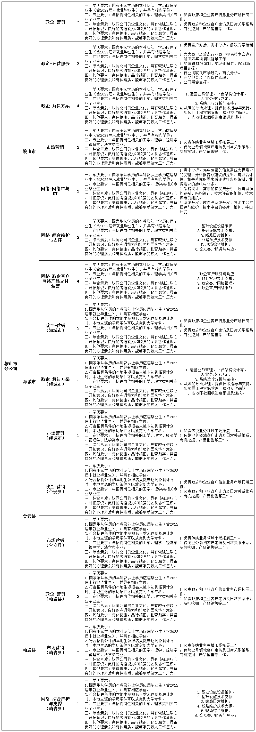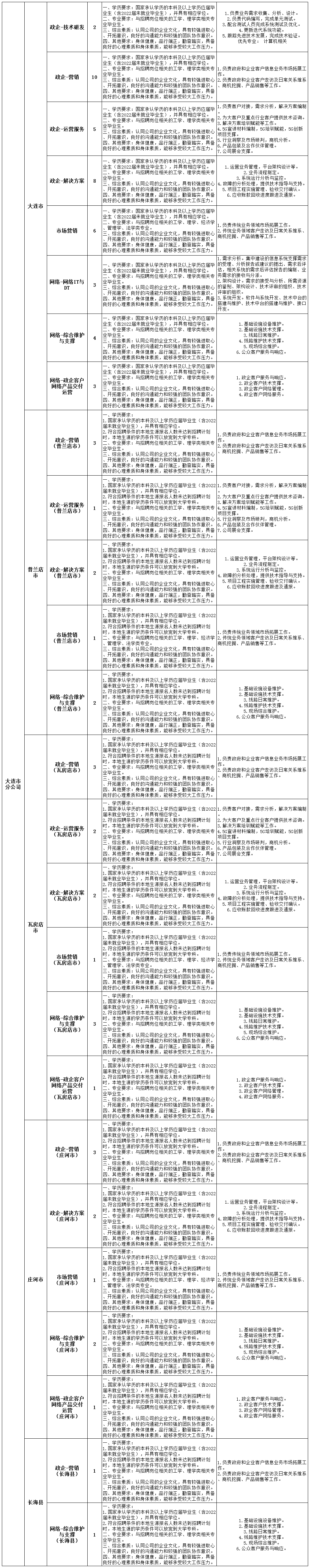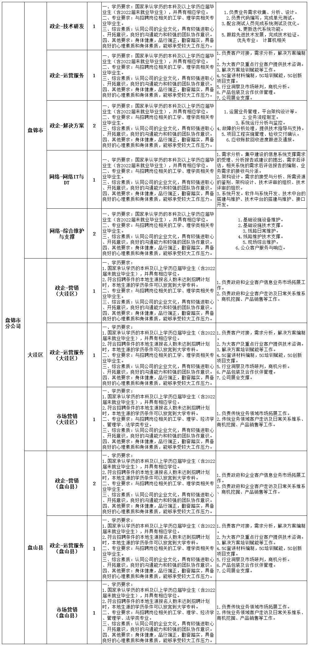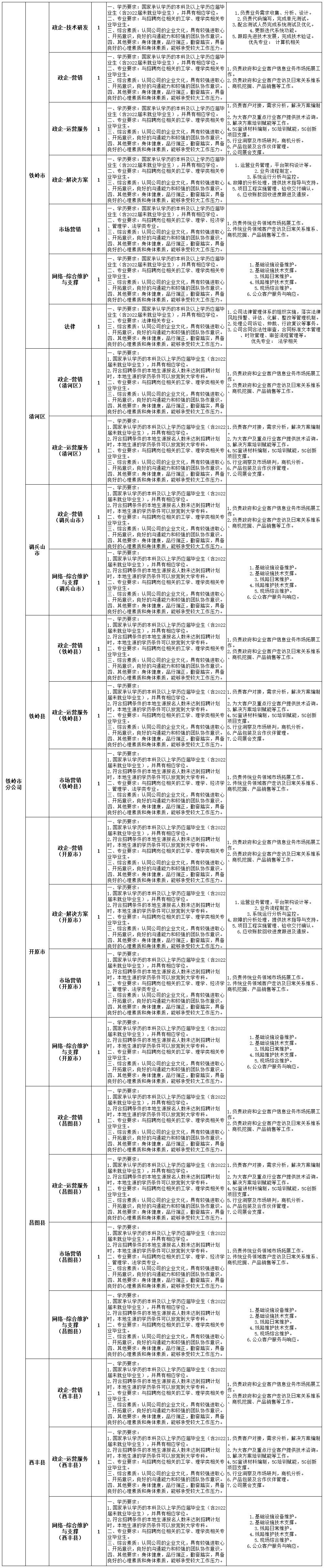 中国联通辽宁省分公司招聘职位如下:(辽宁省14个城市及下属地区)