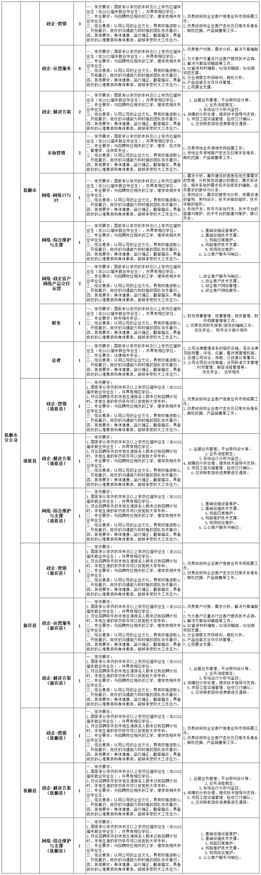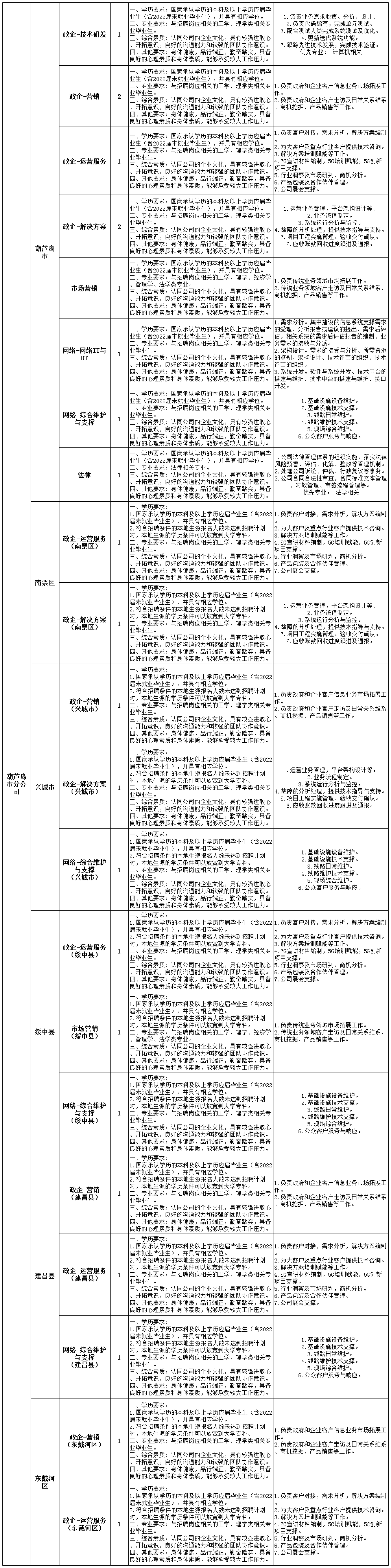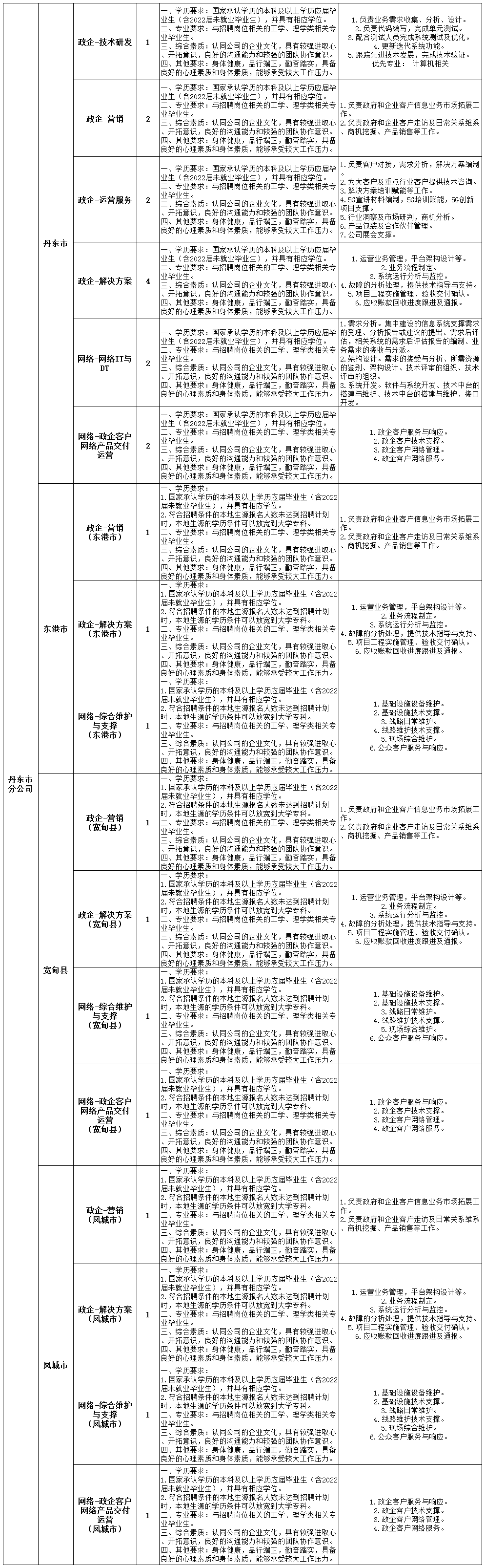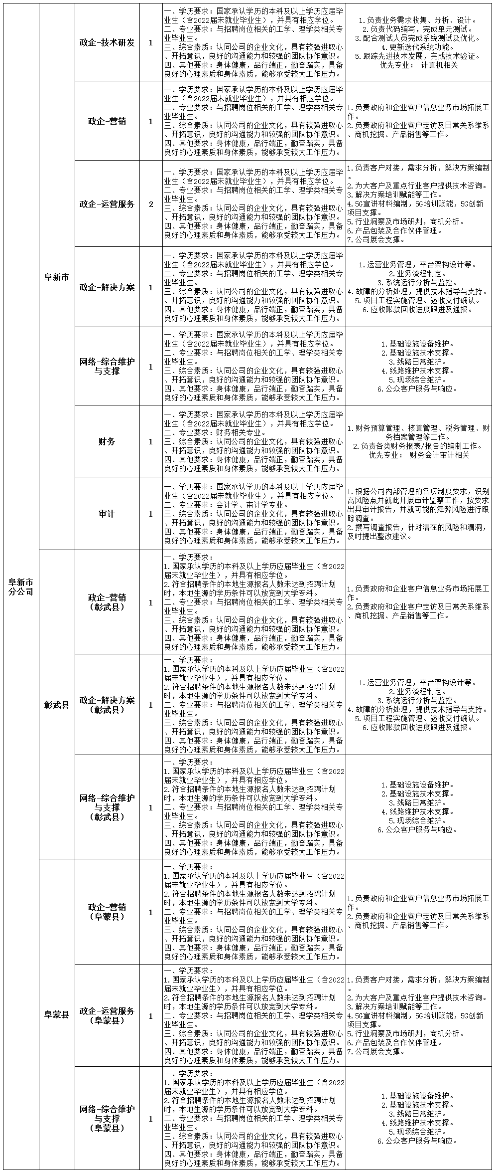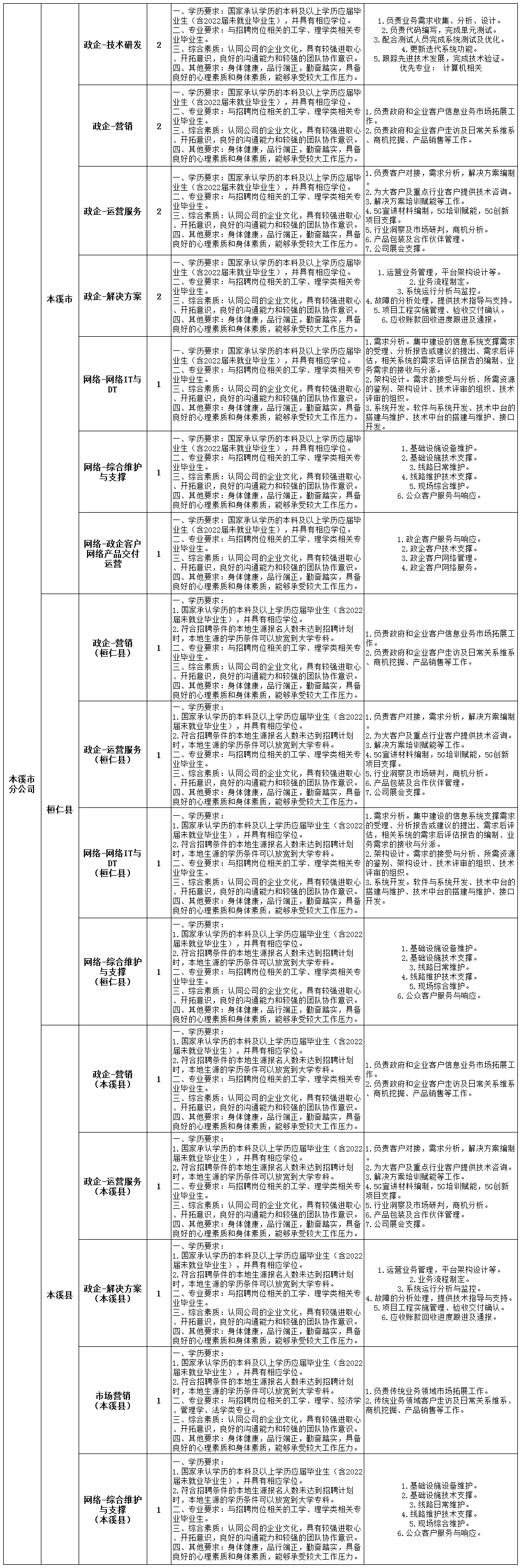 中国联通辽宁省分公司招聘职位如下:(辽宁省14个城市及下属地区)