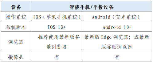 1.带正常上网功能的智能手机或平板设备,必须带有可正常工作的摄像头。