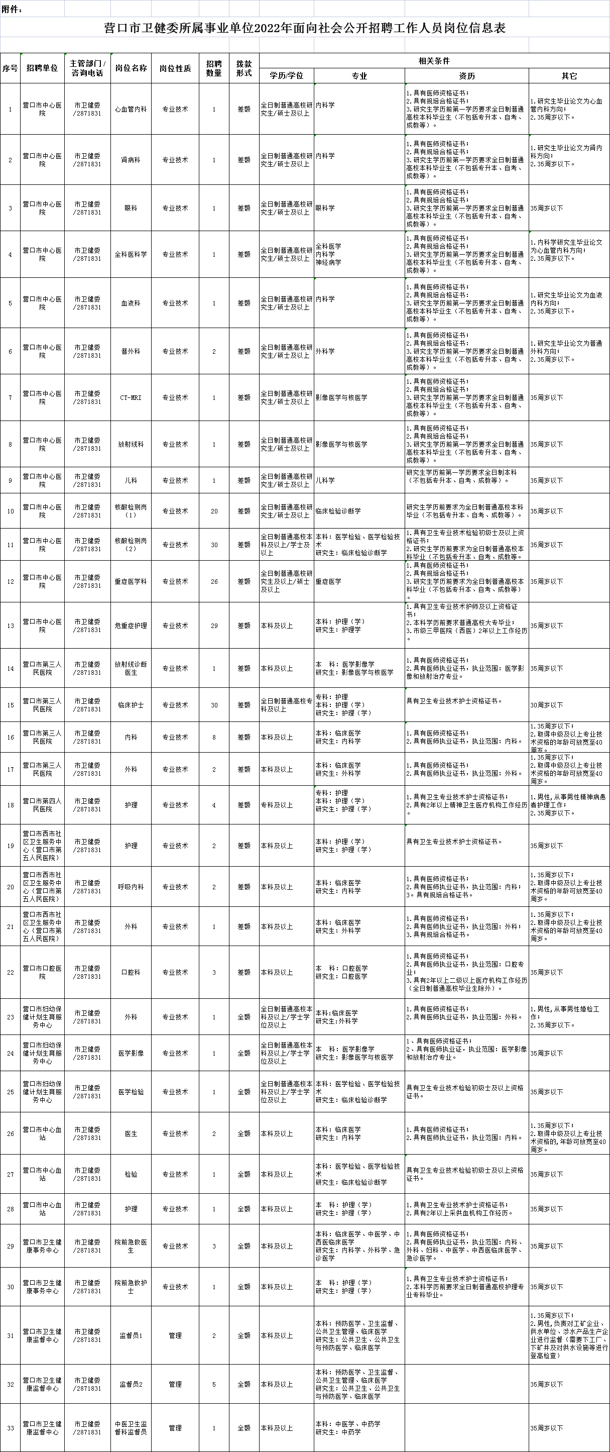 本次面向社会公开招聘187名事业单位工作人员,凡符合报考基本条件和招聘岗位要求人员均可报考。具体招聘岗位信息详见《营口市卫健委所属事业单位2022年面向社会公开招聘工作人员岗位信息表》。