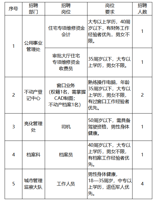 因工作需要,北镇市第二城市服务中心拟面向社会公开招聘工作人员,具体招聘事宜如下: