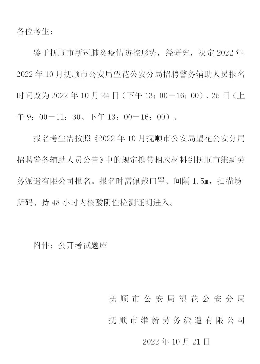 抚顺市公安局第七批警务辅助人员报名恢复通知