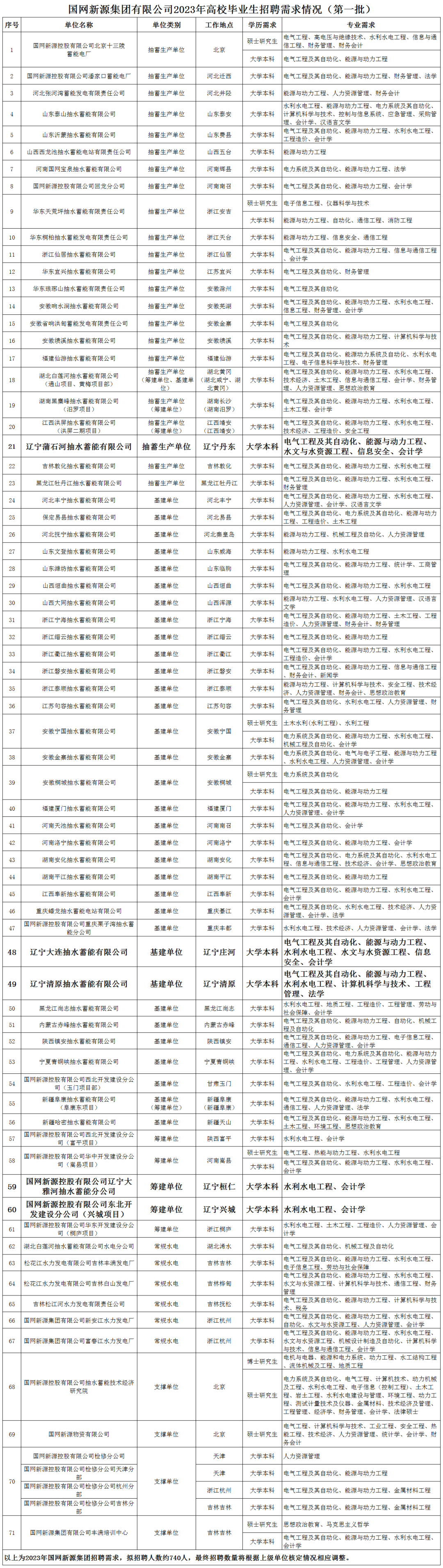 《国网新源集团有限公司2023年高校毕业生招聘需求情况(第一批).xls》(见下图)