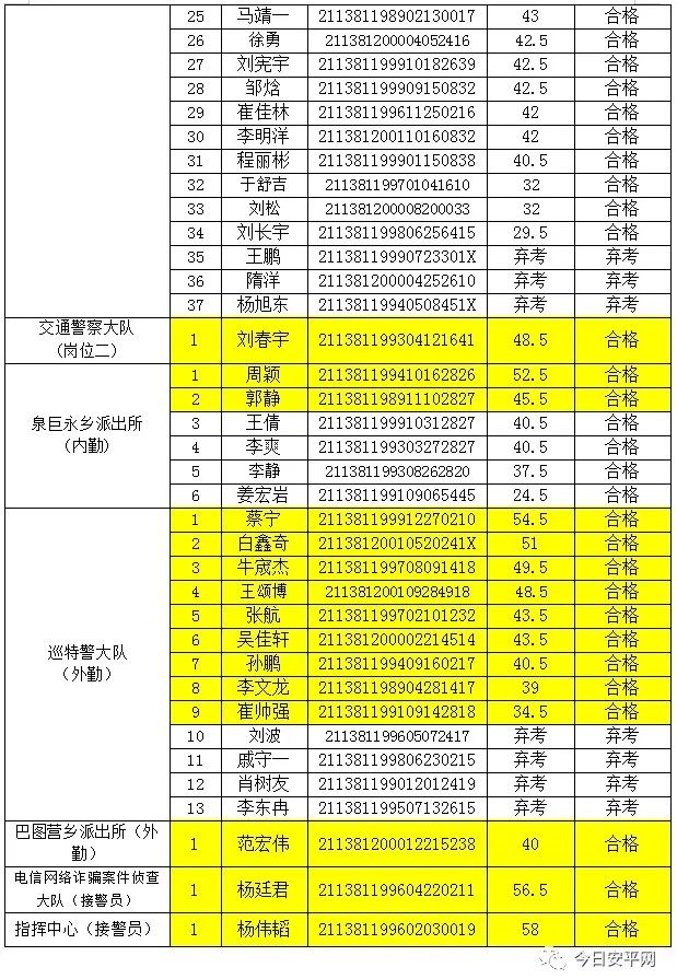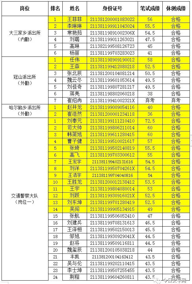 辽宁安平人力资源服务有限公司北票市分公司受北票市公安局的委托,现面向社会招聘工作人员,现将北票市公安局招聘辅警笔试、体能测试成绩及进入面试人员名单公告如下: