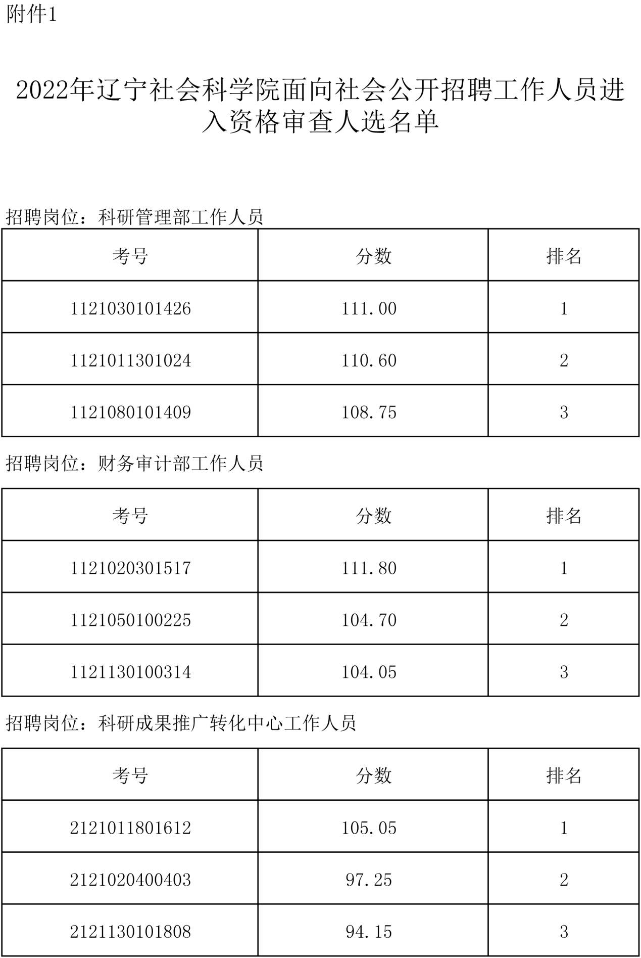 附件:1.辽宁社会科学院2022年面向社会公开招聘工作人员进入资格审查人选名单