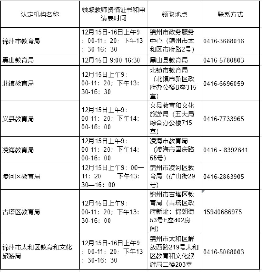 2022年下半年锦州市中小学《教师资格证书》和《教师资格认定申请表》领取的通知.
