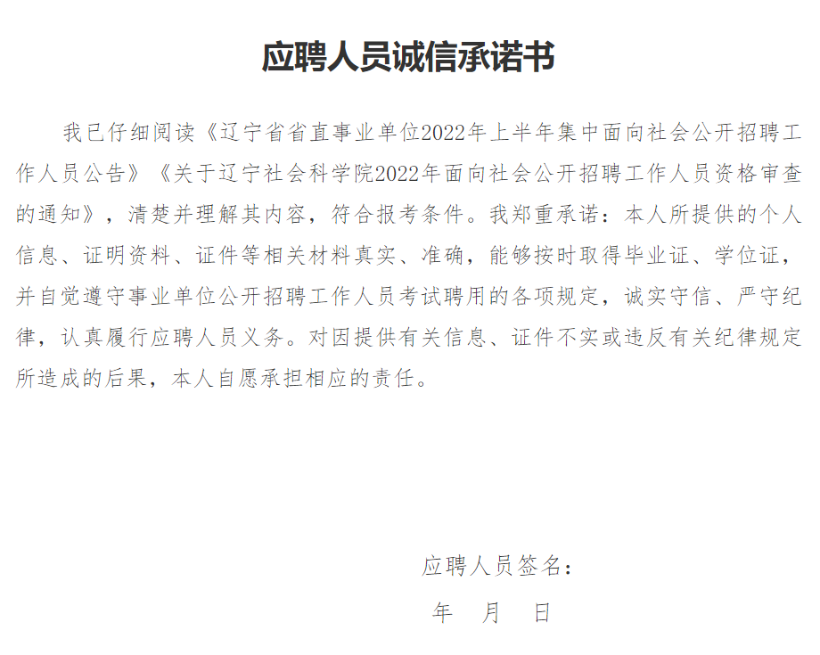 6.面试具体时间、地点另行通知,请通过资格审查的考生关注辽宁社会科学院网站,并保持所留联系电话通讯畅通。