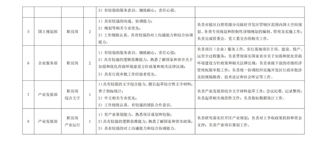 1.辽阳市党政群机关干部、全额拨款事业单位(不含学校、医院)在岗在编人员必须拥护中国共产党领导,遵守中华人民共和国宪法和法律,突出高素质专业化,突出精干有活力,熟悉国家产业发展政策,有与开发区产业发展、双招双引、项目建设、规划设计、生态环境保护、党的建设等相匹配的专业能力素质,具有大学本科及以上学历,近三年年度考核均为称职(合格)及以上等次,符合相应职位的任职资格条件,应聘职位应符合任职回避相关规定。其中: