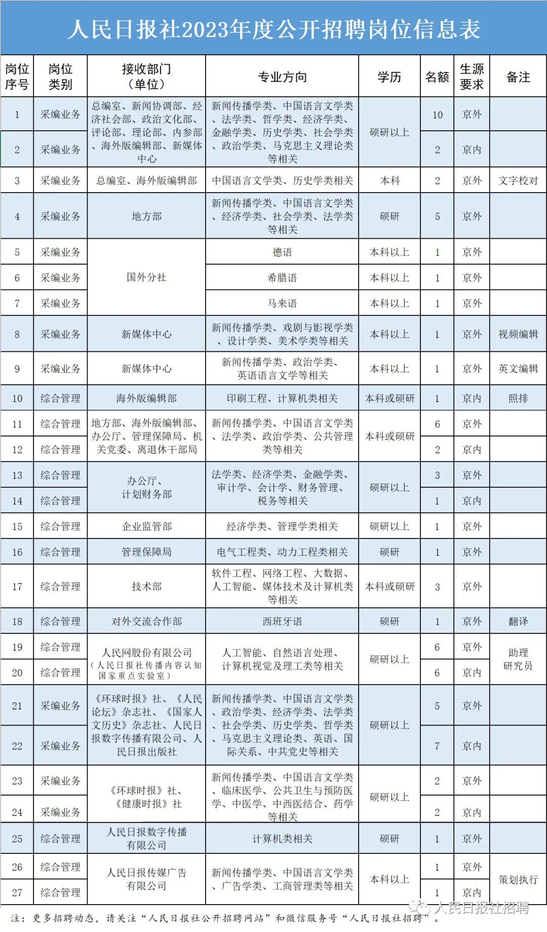 1.本次公开招聘不接受其他形式报名,招聘相关信息均在人民日报社公开招聘网站发布,请及时关注,并保持通讯工具畅通。招聘过程中,未能进入下一环节的人员,将不再另行通知。