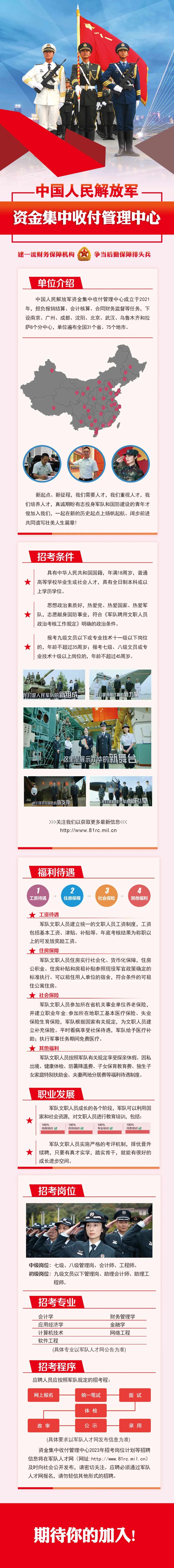 中国人民解放军资金集中收付管理中心2023年面向社会公开招考文职人员若干人预告