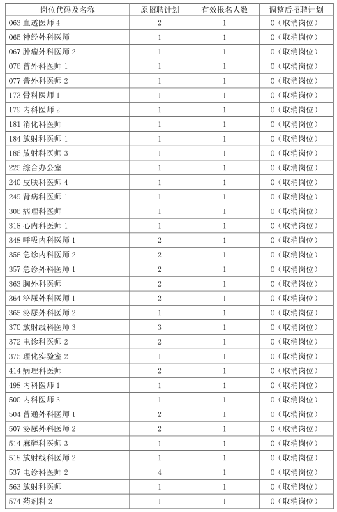 现将因有效报名人数与岗位招聘计划达不到开考比例而取消和削减招聘计划的岗位予以公布: