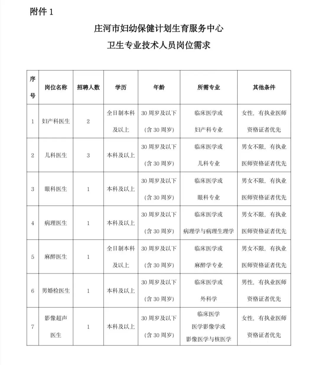 1、庄河市妇幼保健计划生育服务中心卫生专业技术人员岗位需求。