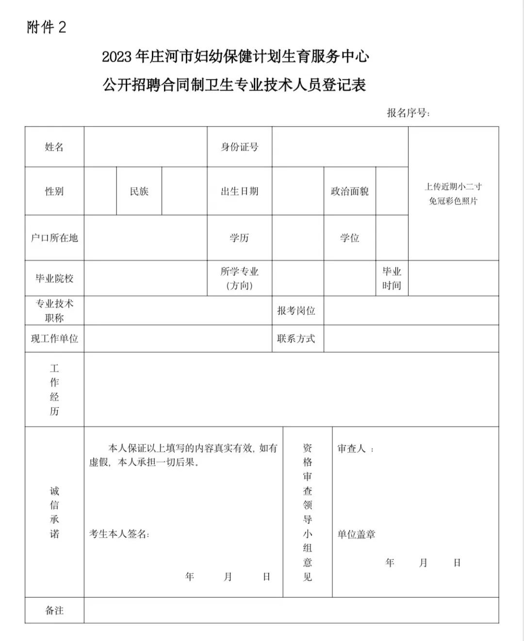 2、2023年庄河市妇幼保健计划生育服务中心公开招聘合同制人员报名登记表。