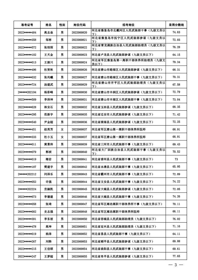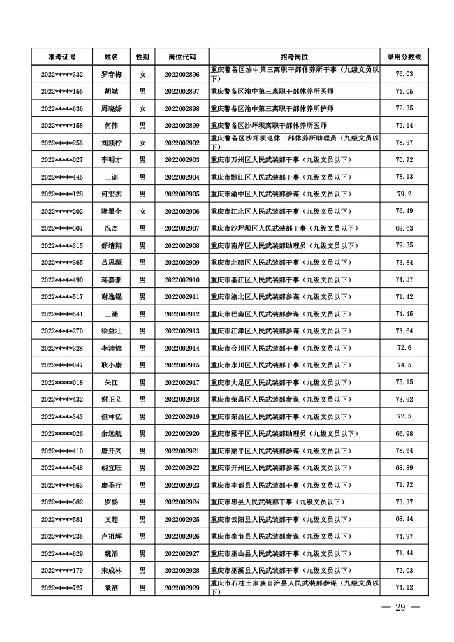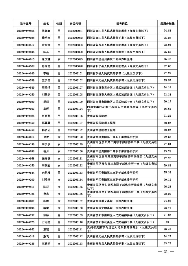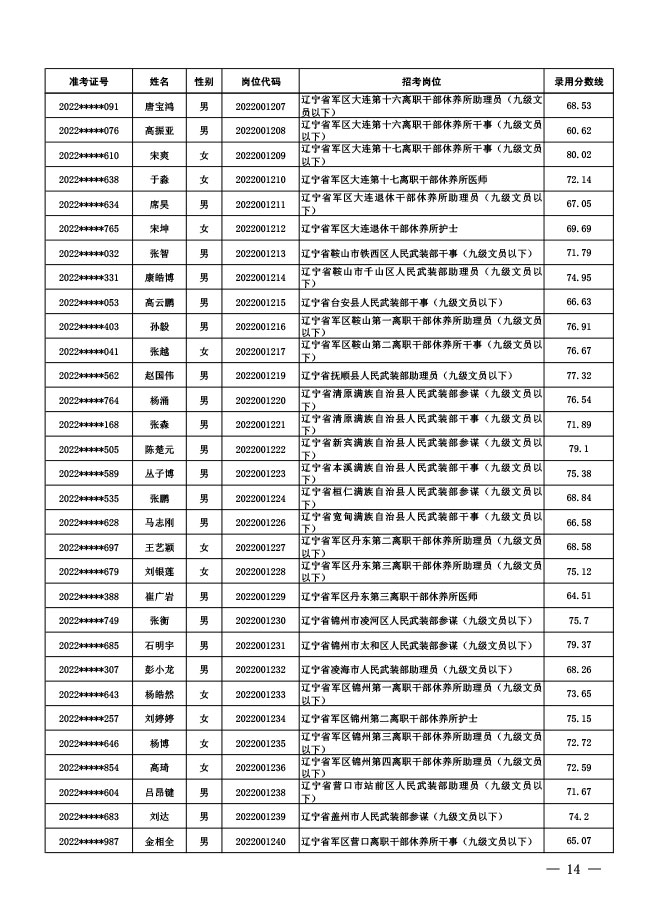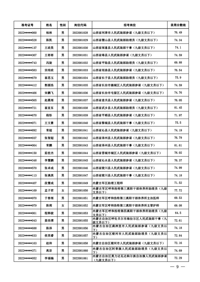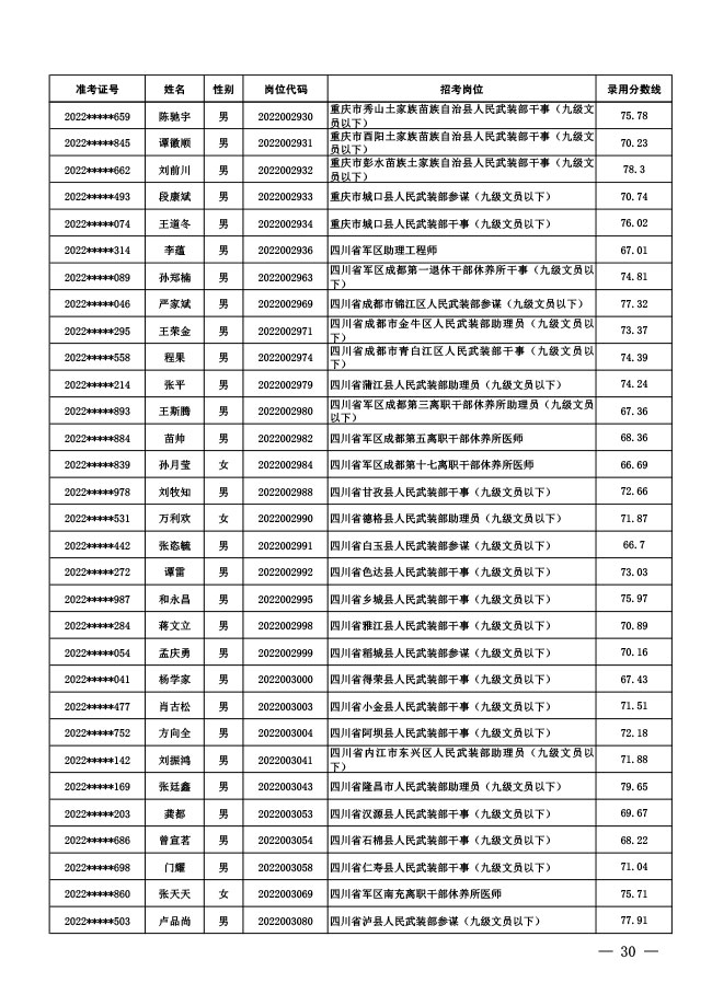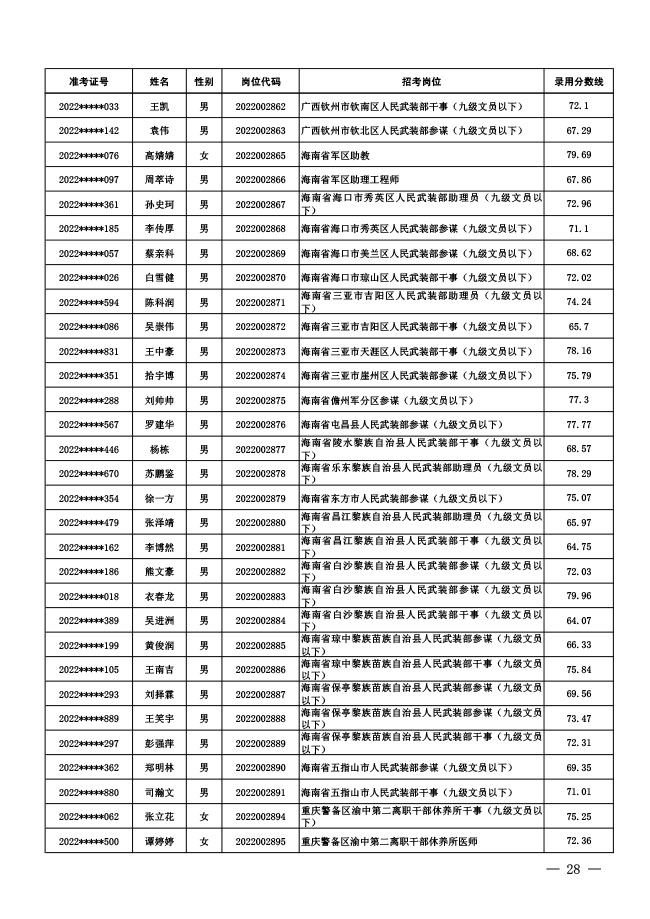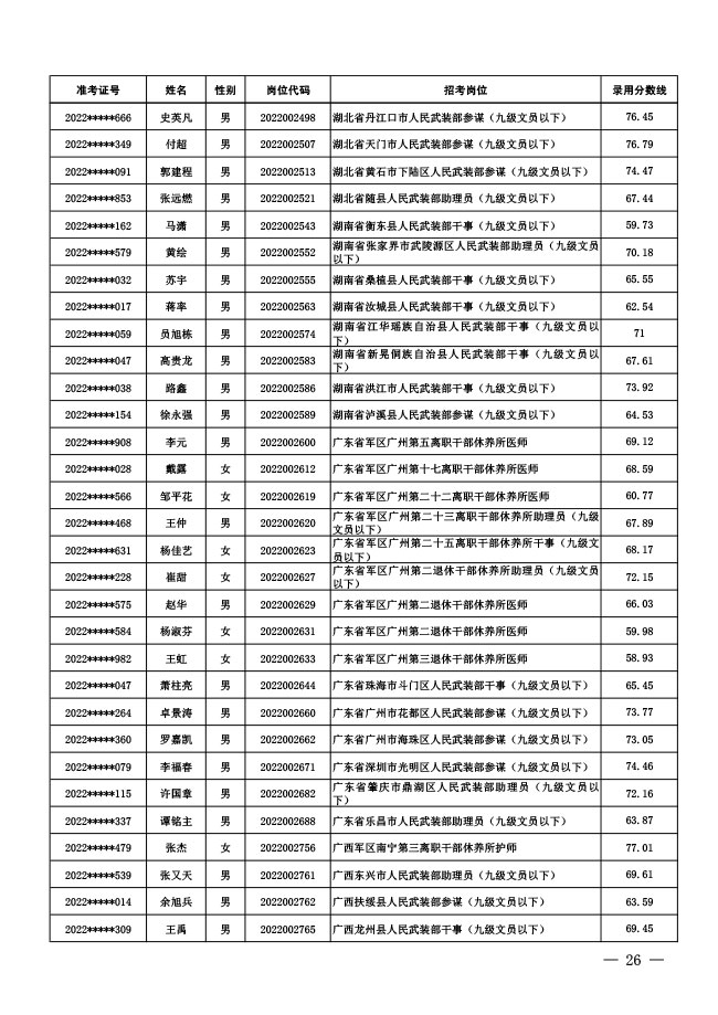 公示中央军委国防动员部2022年面向社会 公开招考文职人员拟录用对象名单