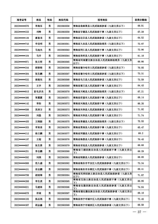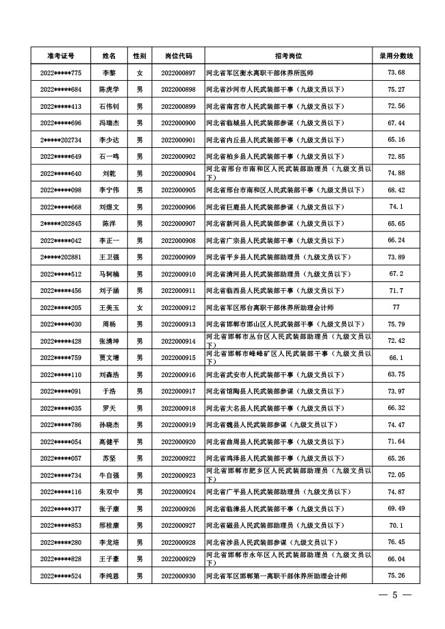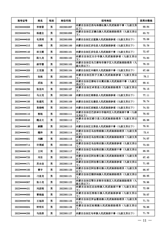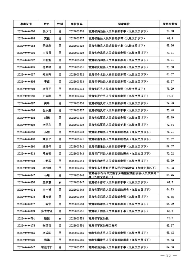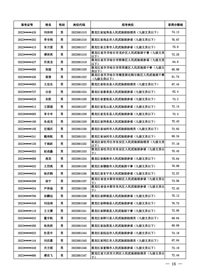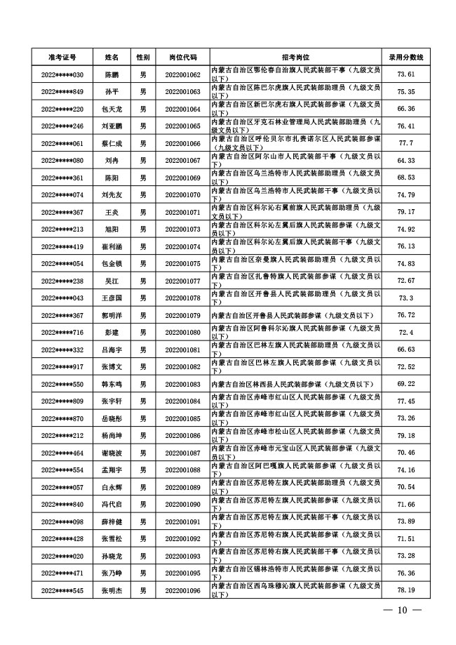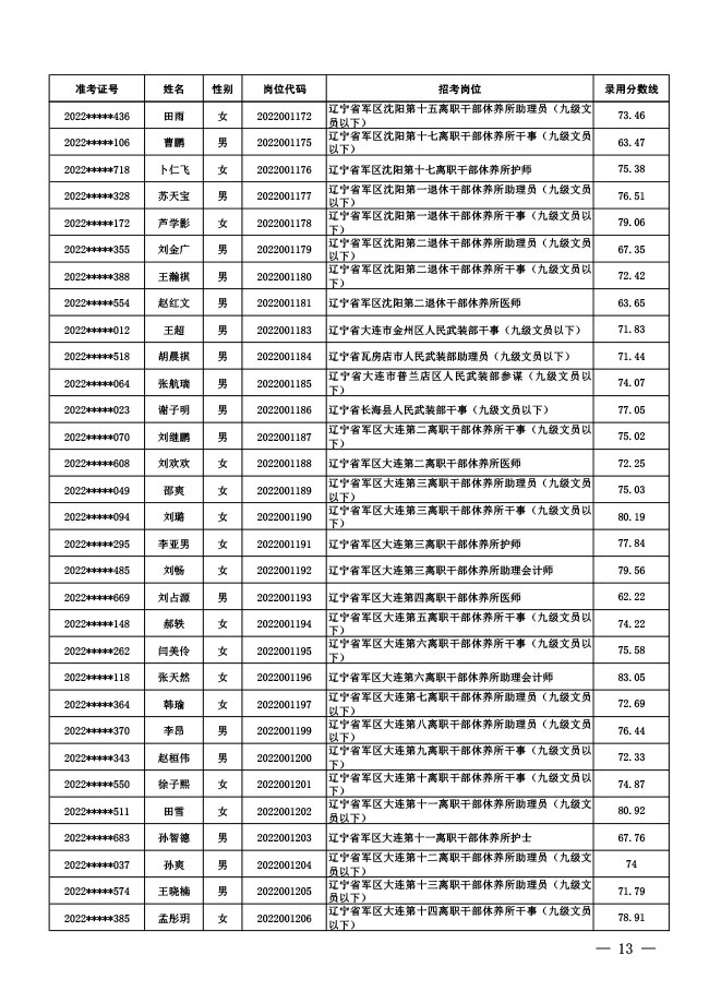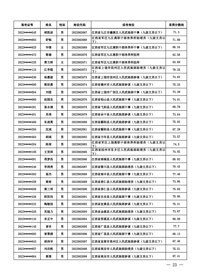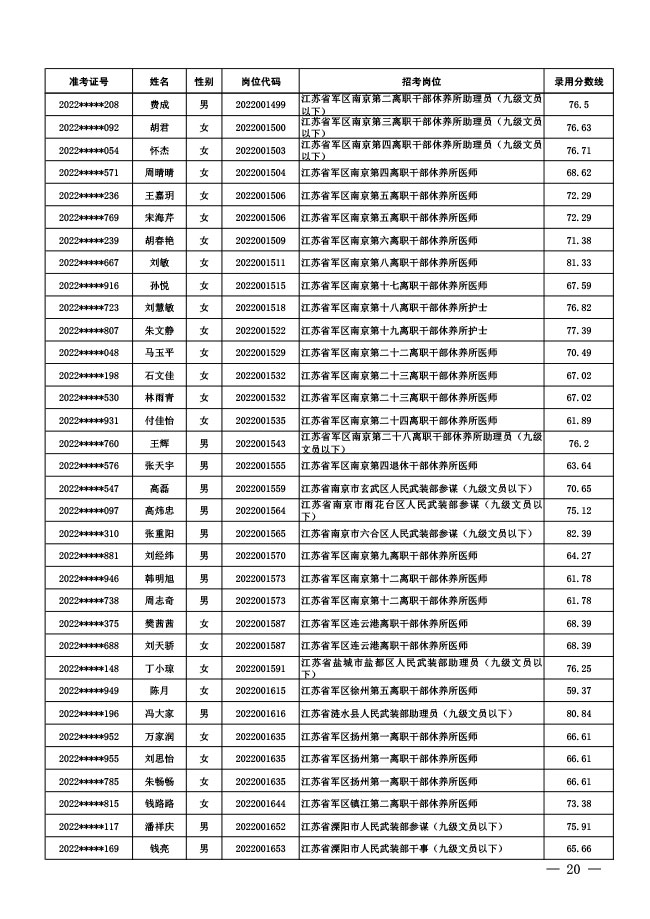 公示中央军委国防动员部2022年面向社会 公开招考文职人员拟录用对象名单