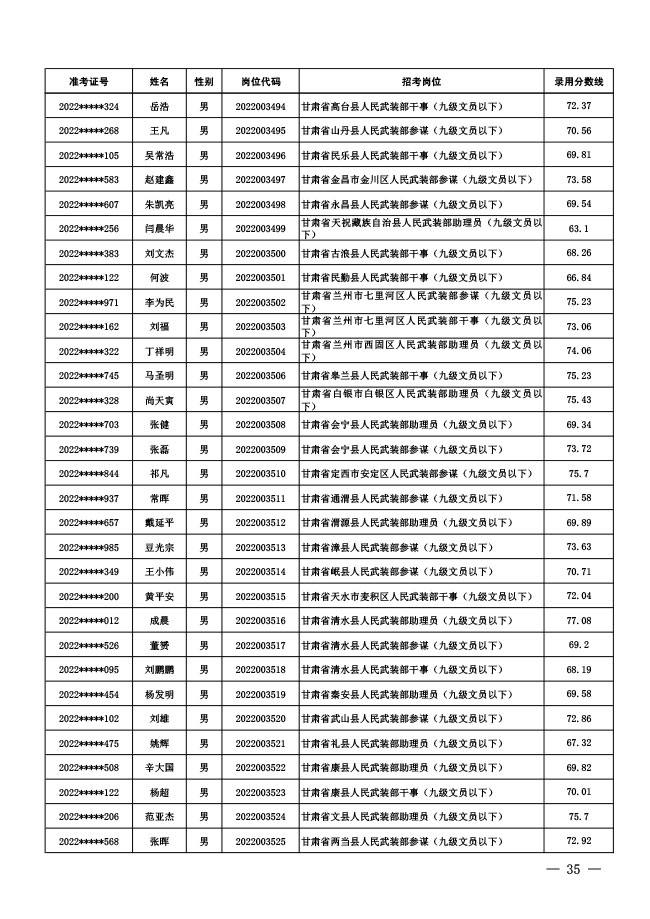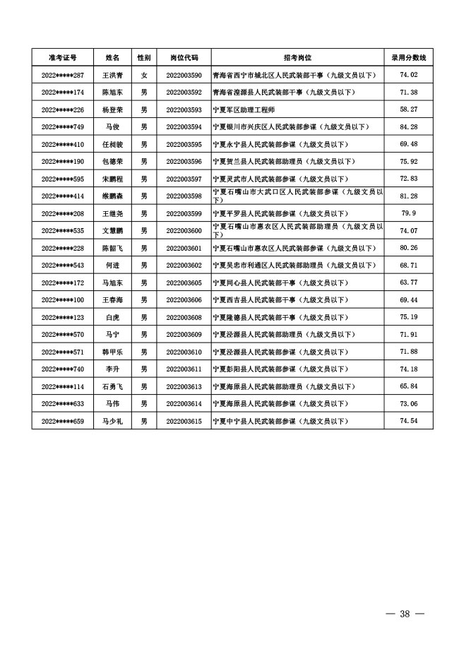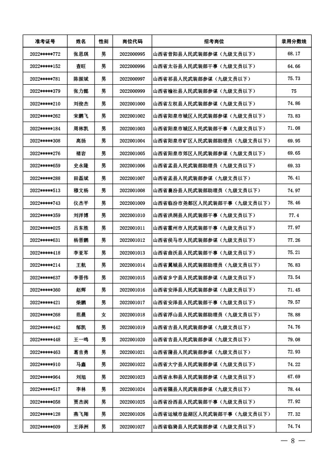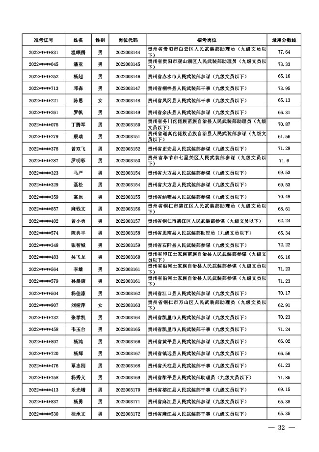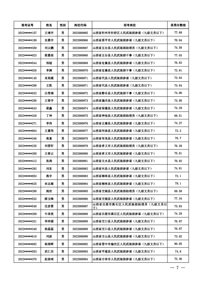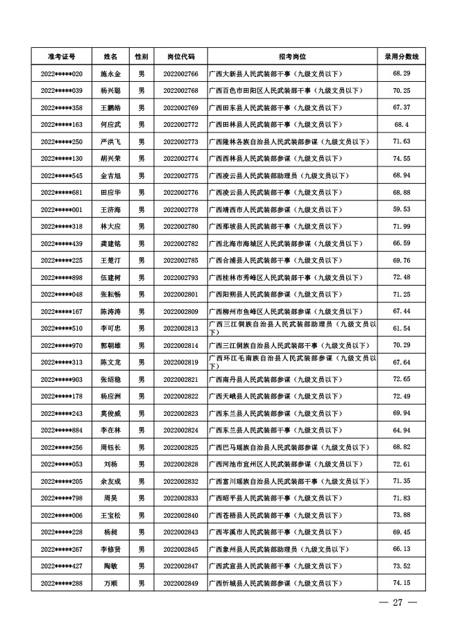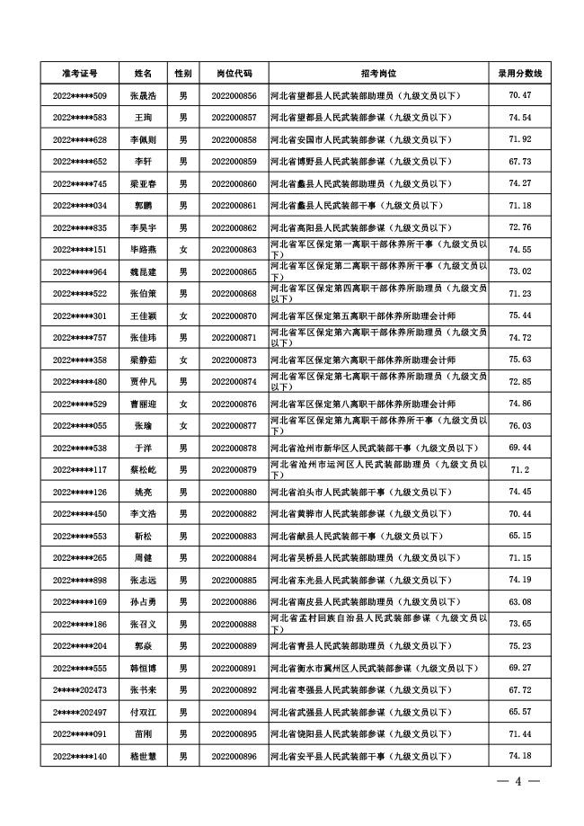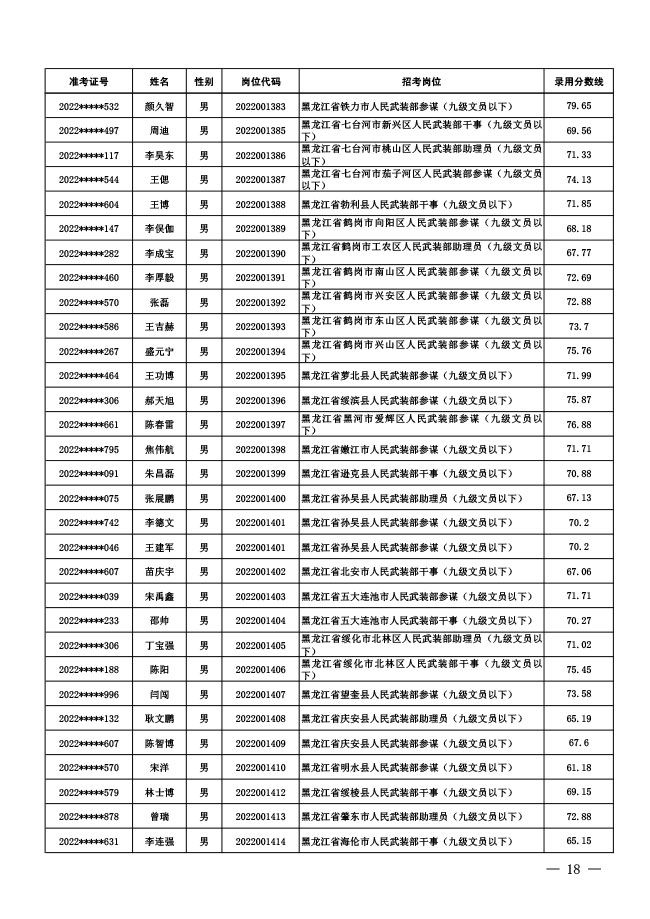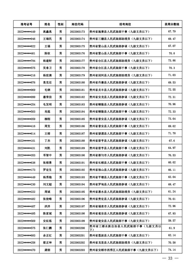 公示中央军委国防动员部2022年面向社会 公开招考文职人员拟录用对象名单