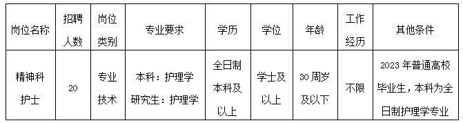 为满足医院人才发展规划及科室实际工作需要,根据《大连市第七人民医院职工招聘管理办法》,现面向社会公开招聘20名合同制精神科护士,凡符合招聘条件的人员均可报名。