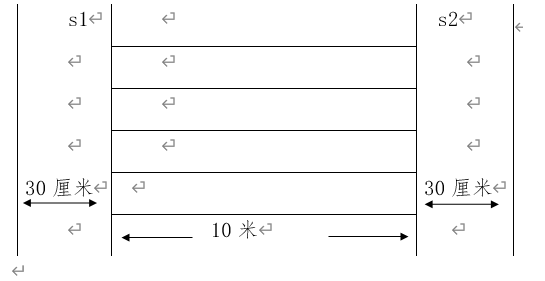注意事项:当受测者触碰标识物时,脚不要越过S1和S2线。图示如下: