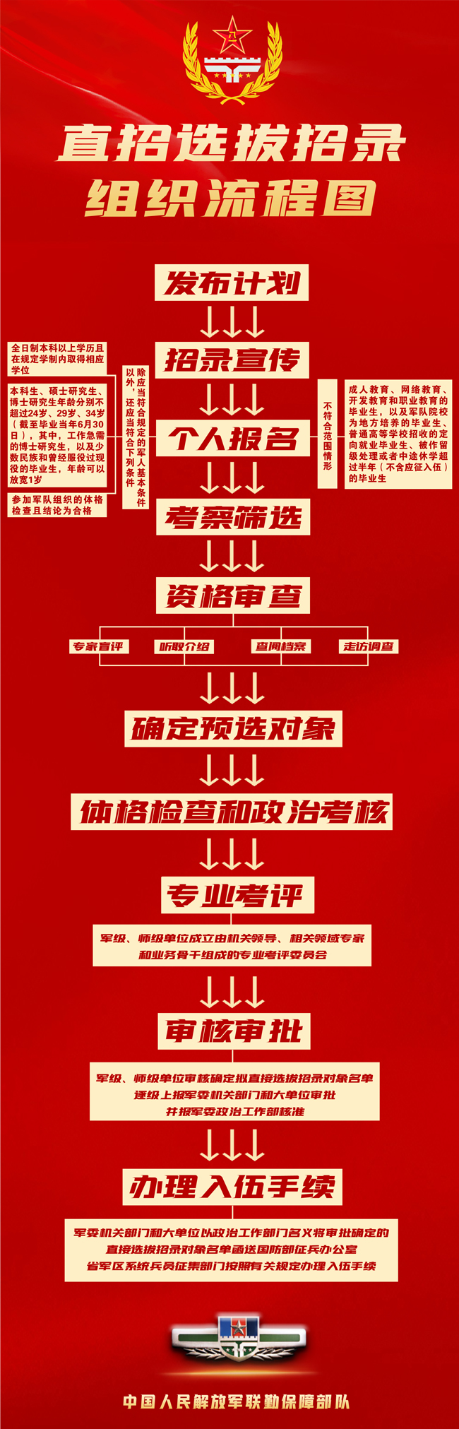 6.办理入伍手续。经审批确定为直接选拔招录对象的,由省军区系统兵员征集部门按照有关规定办理入伍手续。