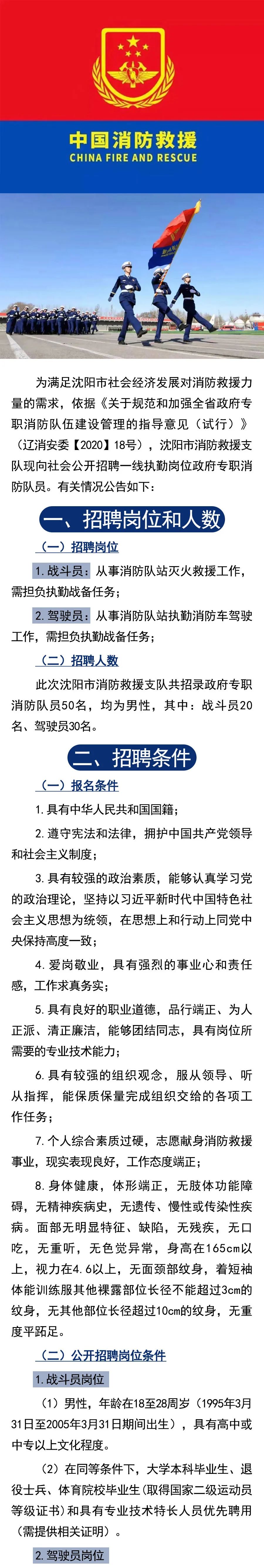 2023年沈阳市消防救援支队政府专职消防队员招聘50人
