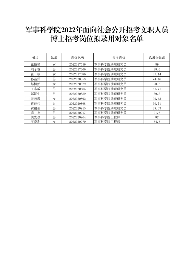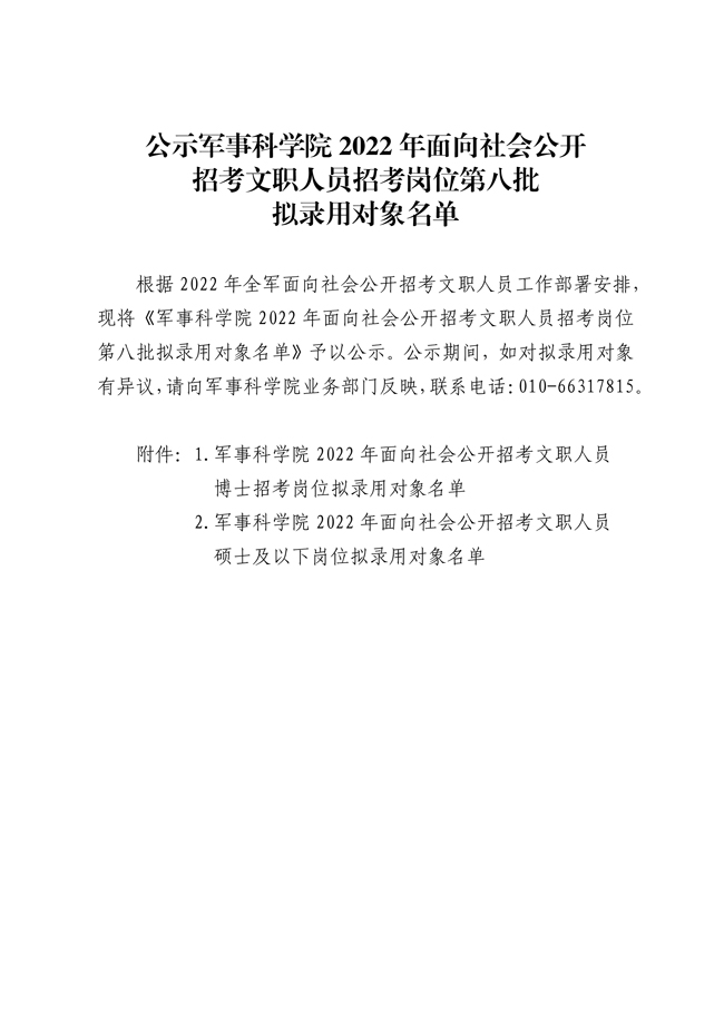 公示军事科学院2022年面向社会公开招考 文职人员招考岗位第八批拟录用对象名单