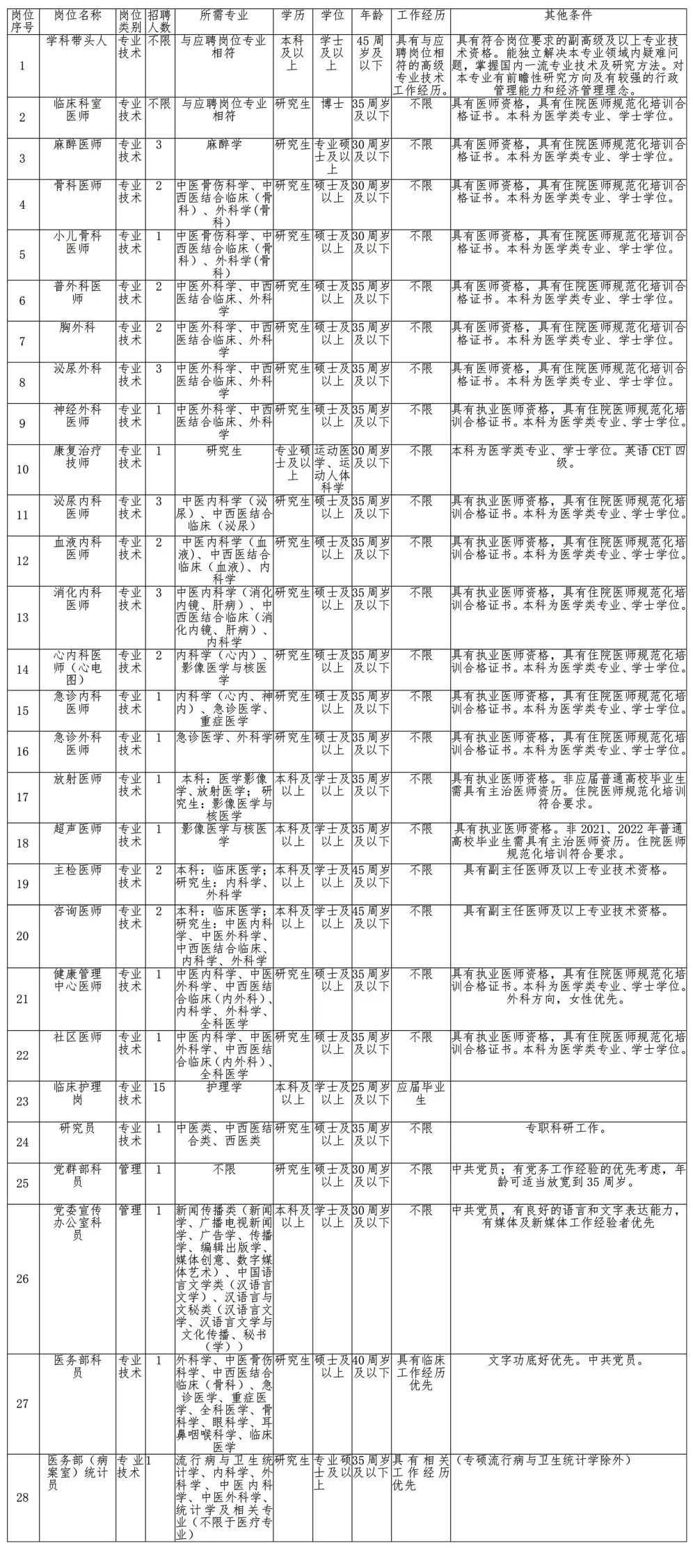 医院本次面向社会公开招聘28个岗位合同制工作人员。具体条件如下: