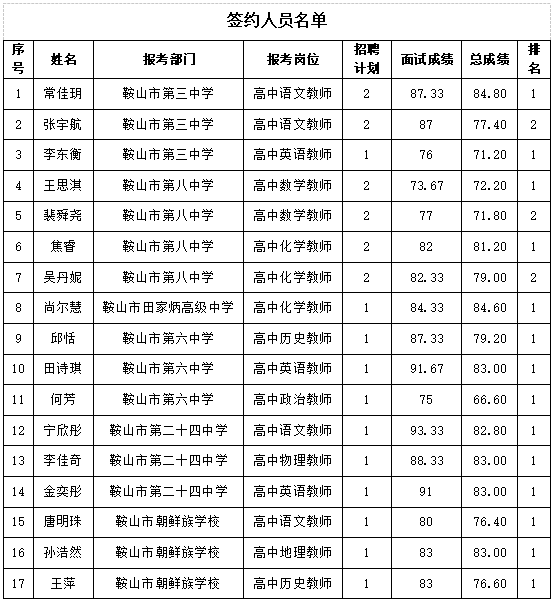鞍山市教育局面向2023届毕业生校园招聘(第三批)面试工作已经结束,根据《鞍山市教育局面向2023届毕业生校园招聘公告(第三批)》有关规定,现将考生与用人单位签订就业协议相关事宜公告如下: