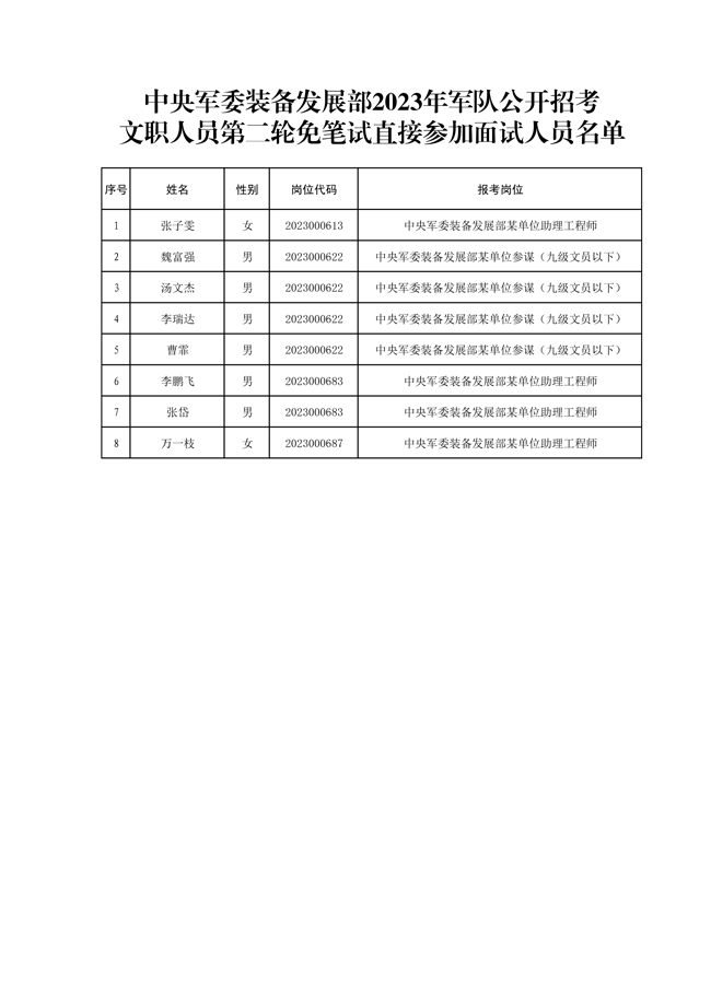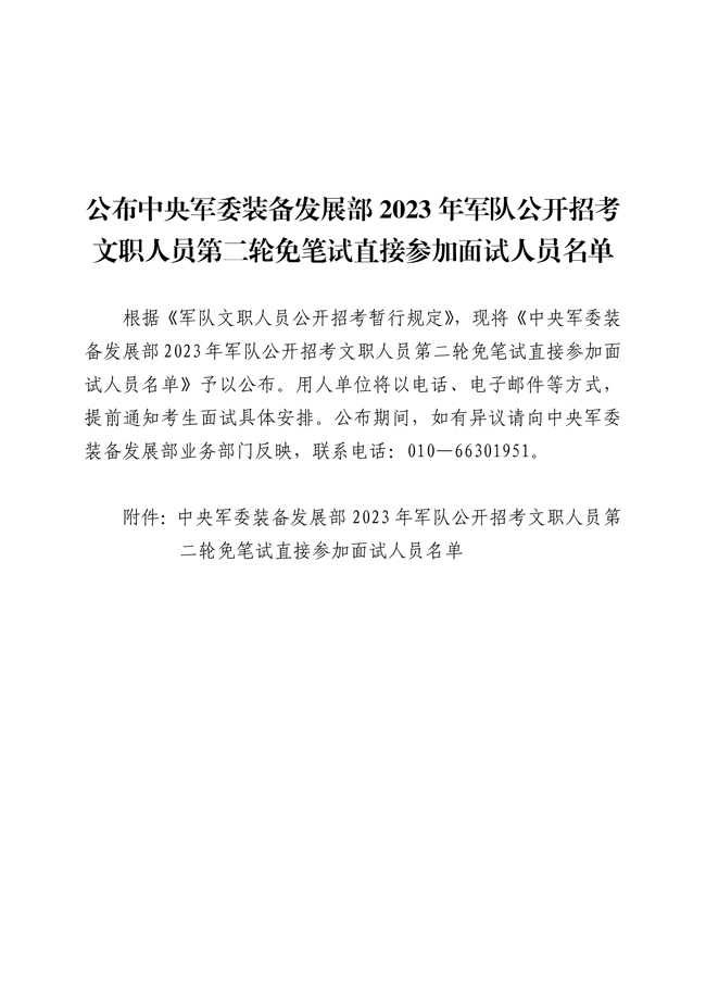 公布中央军委装备发展部2023年军队公开招考 文职人员第二轮免笔试直接参加面试人员名单