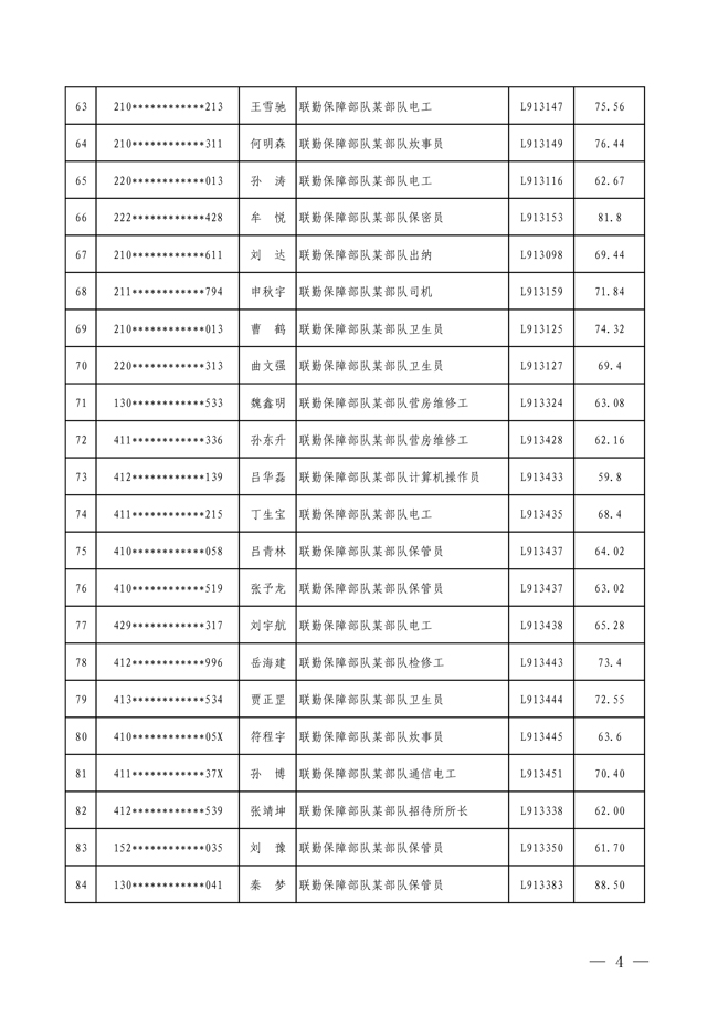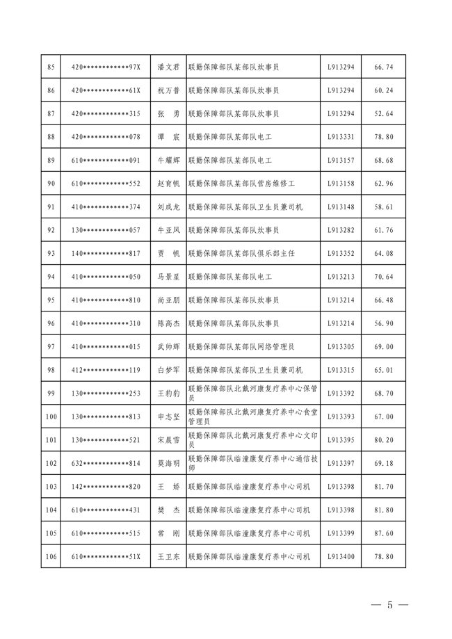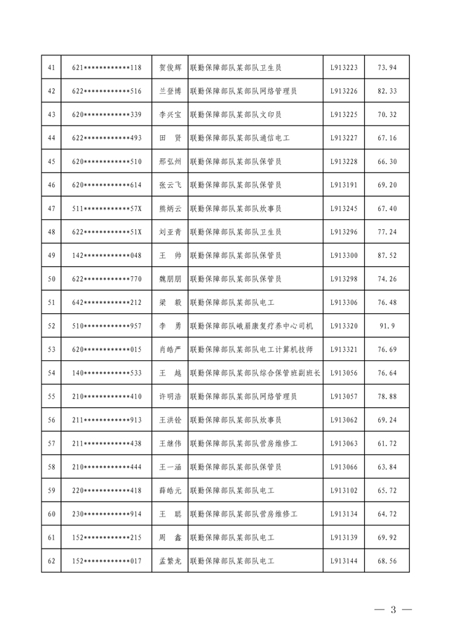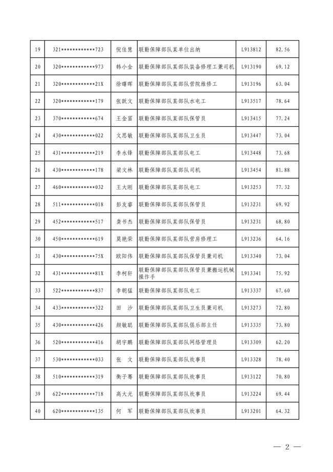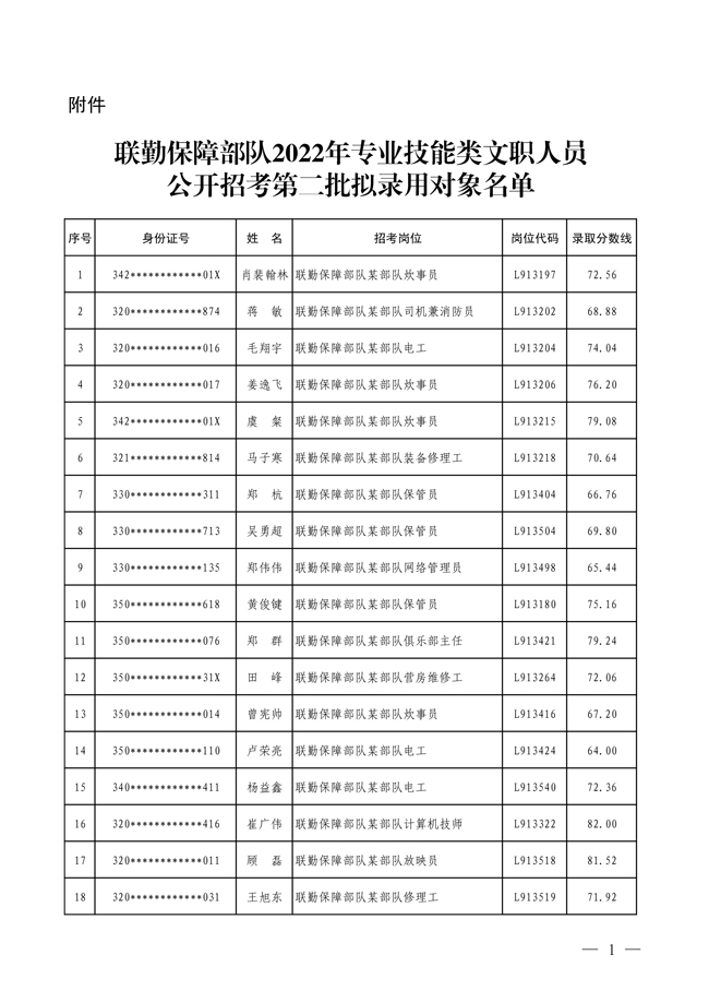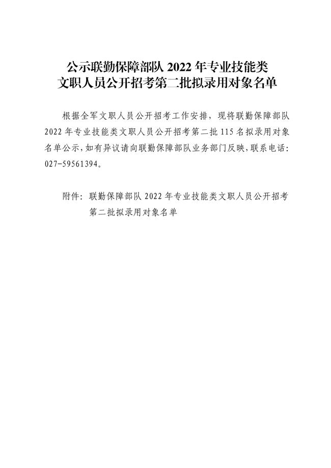 公示联勤保障部队2022年专业技能类 文职人员公开招考第二批拟录用对象名单
