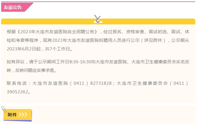 2023年大连市友谊医院自主招聘 拟聘用人员公告