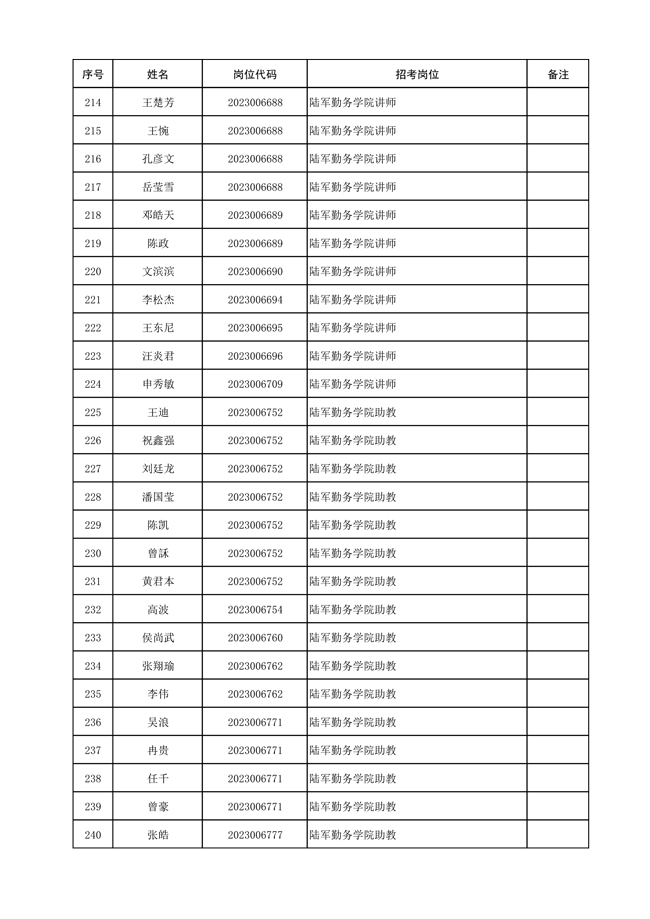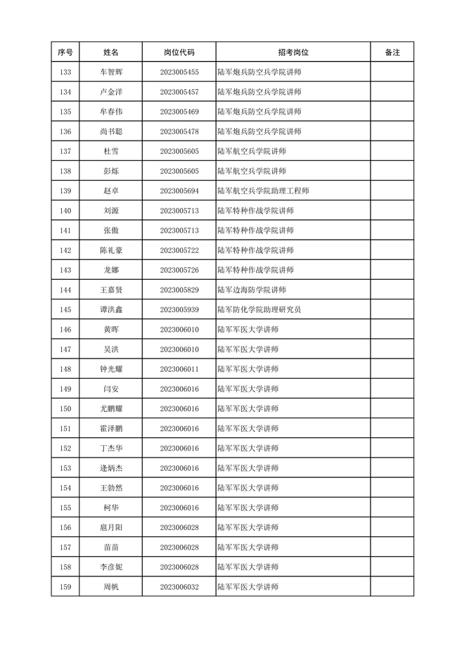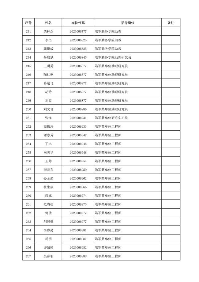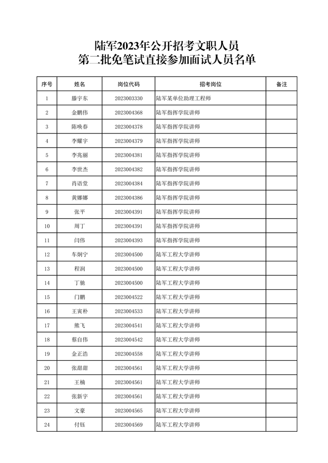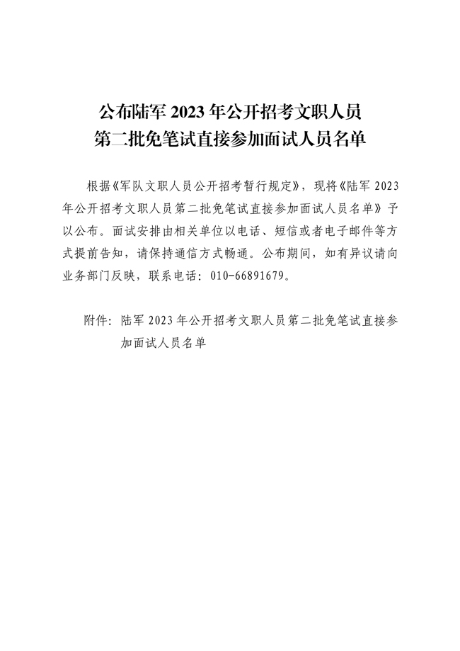 公布陆军2023年公开招考文职人员 第二批免笔试直接参加面试人员名单