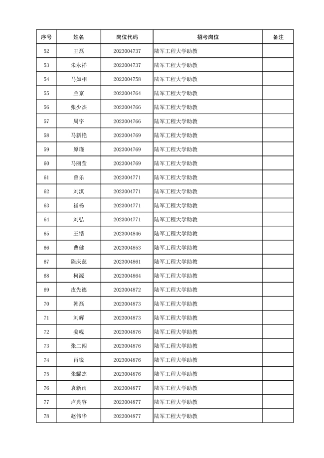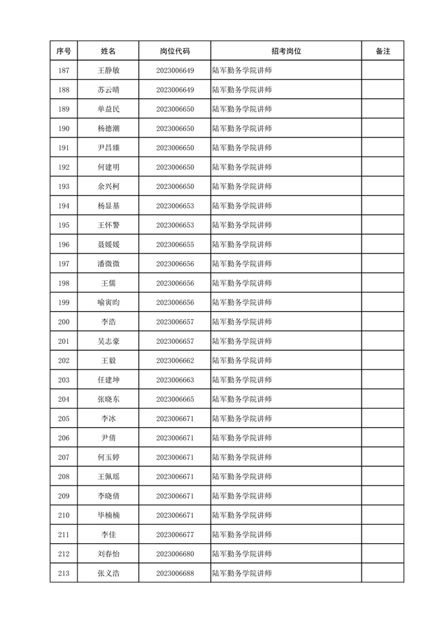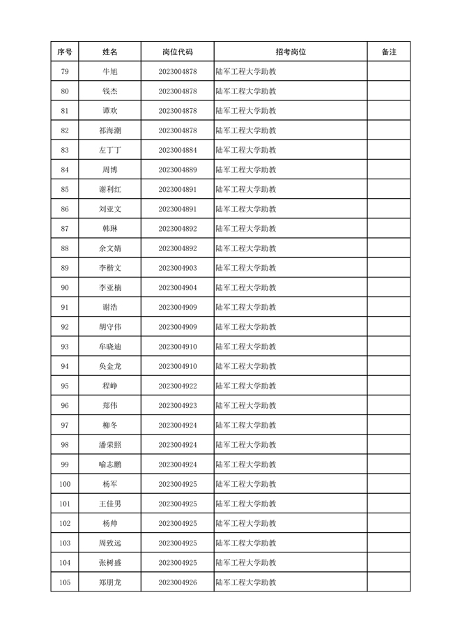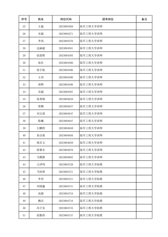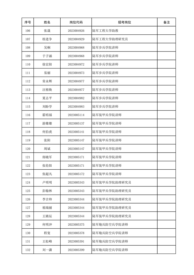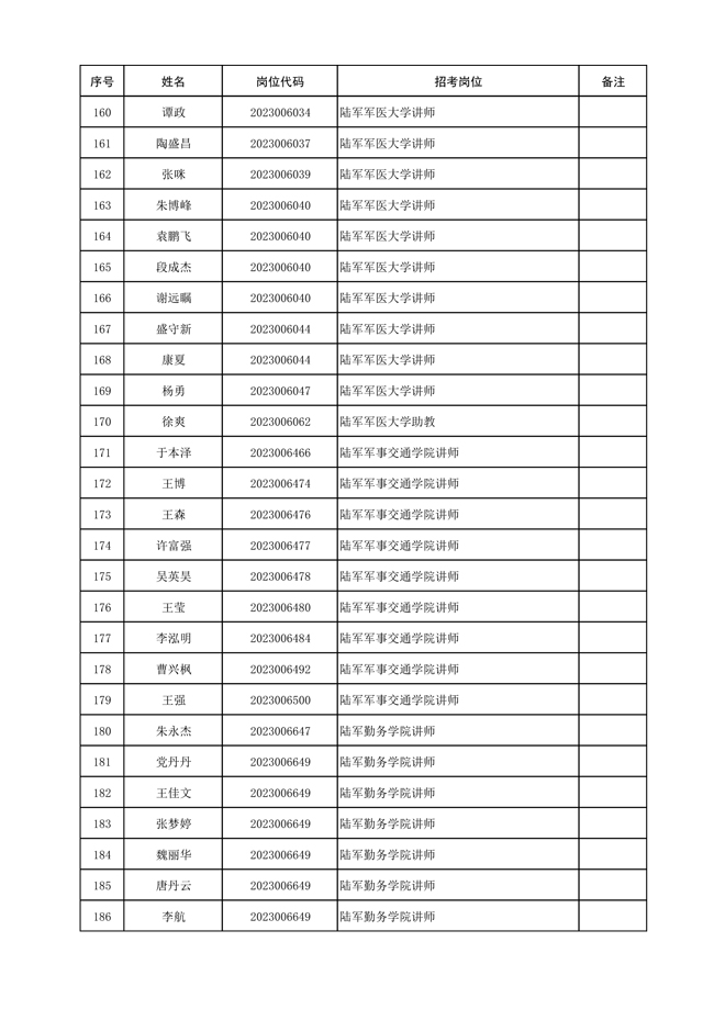 公布陆军2023年公开招考文职人员 第二批免笔试直接参加面试人员名单