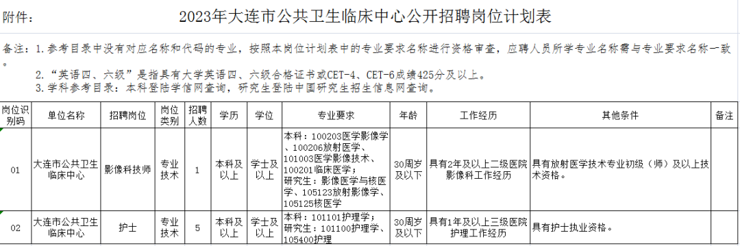 附件:2023年大连市公共卫生临床中心公开招聘岗位计划表