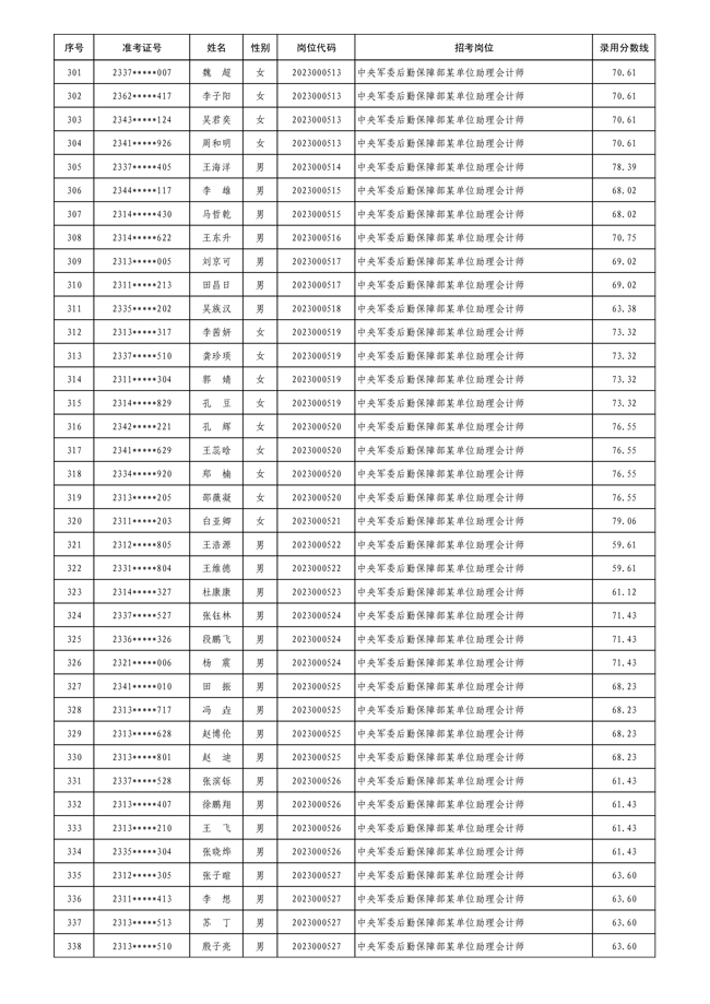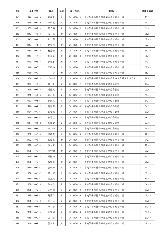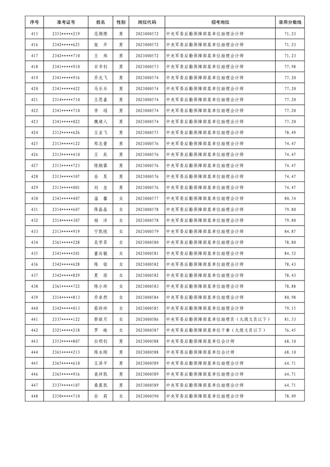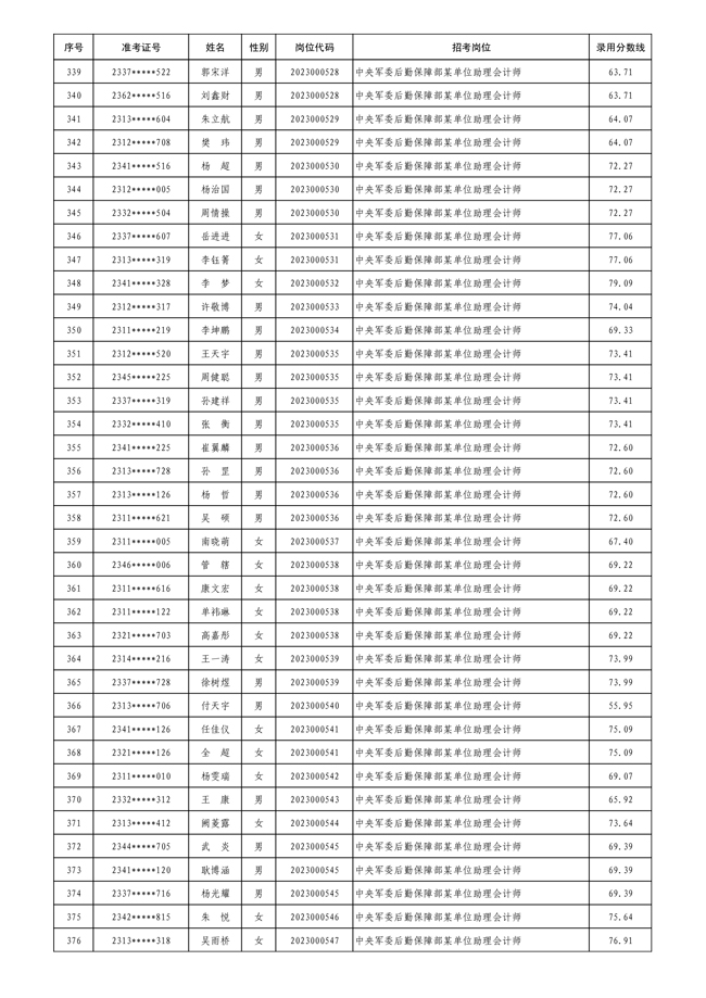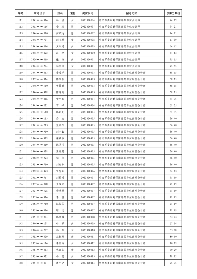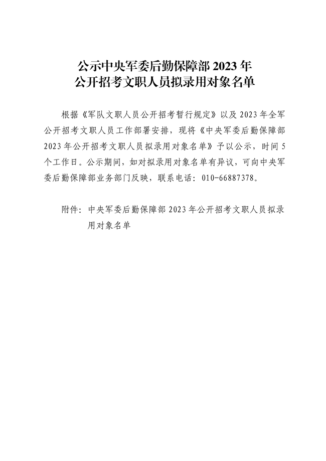 公示中央军委后勤保障部2023年 公开招考文职人员拟录用对象名单