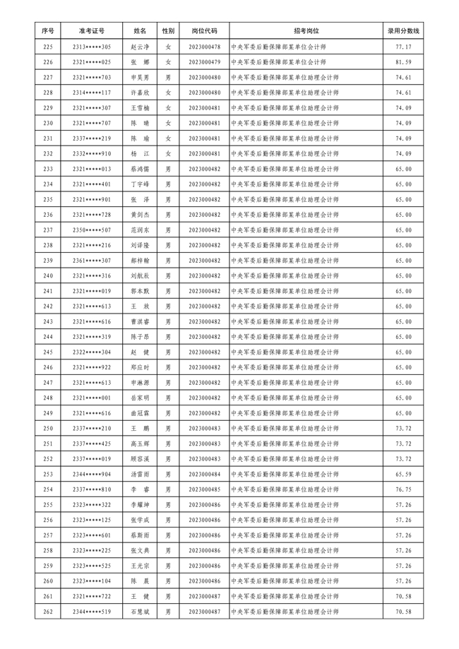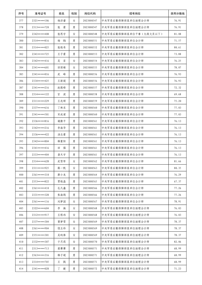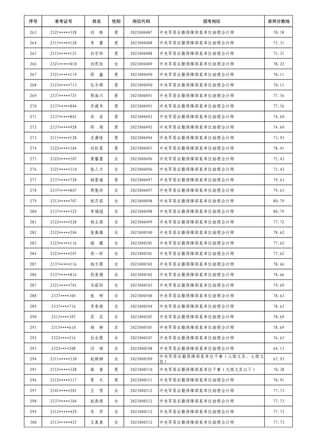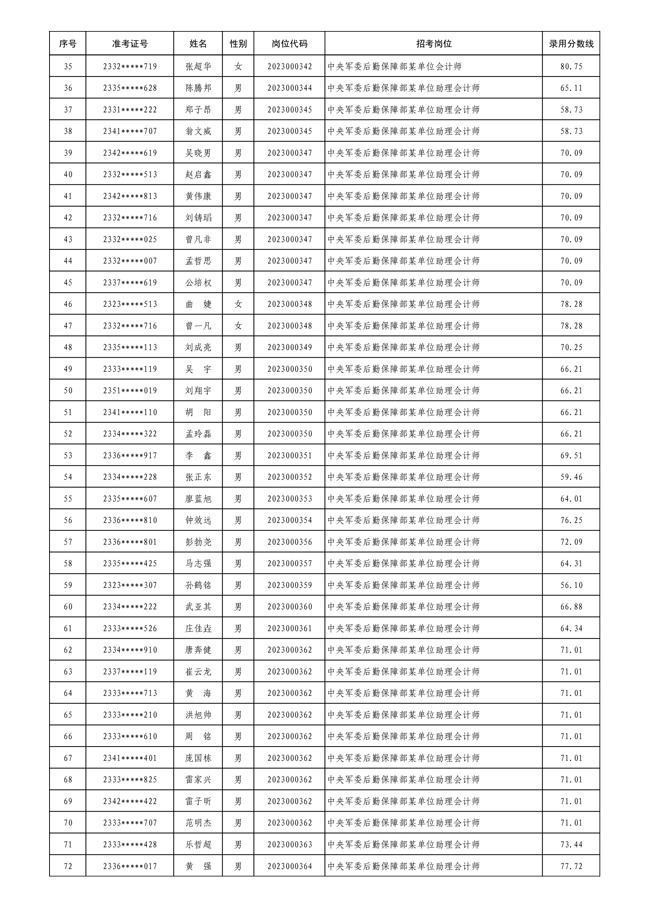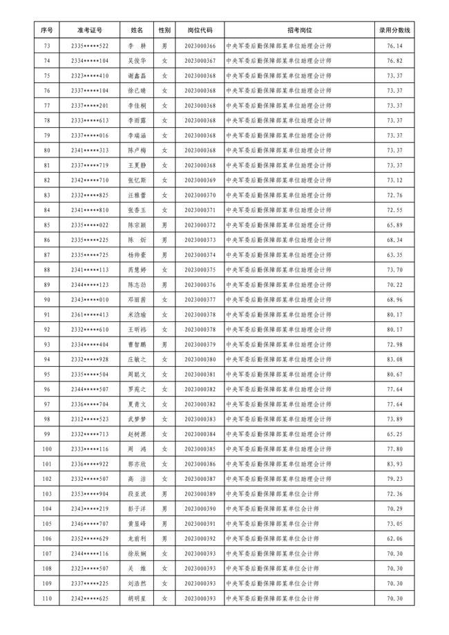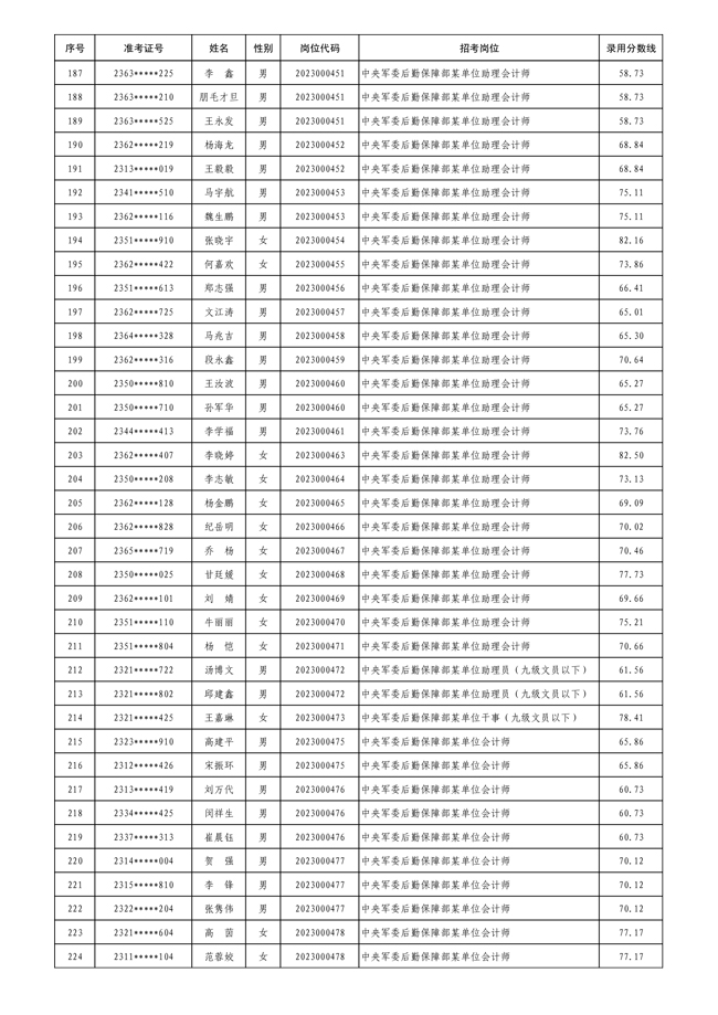 公示中央军委后勤保障部2023年 公开招考文职人员拟录用对象名单
