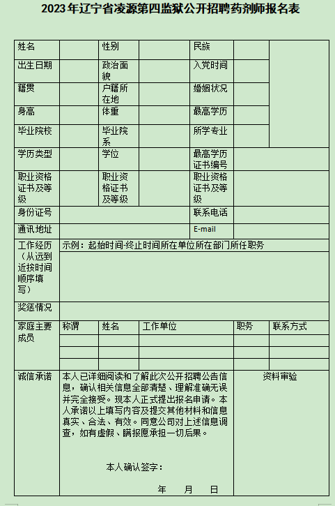 附件1:辽宁省凌源第四监狱公开招聘药剂师报名表.xls