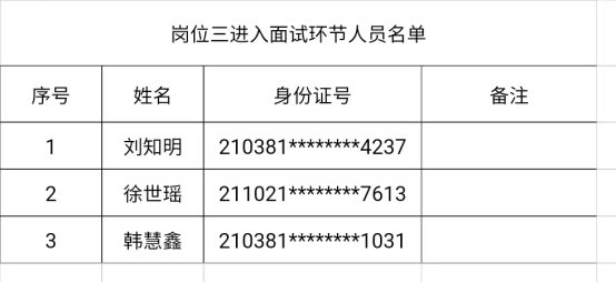 岗位三进入面试环节人员名单: