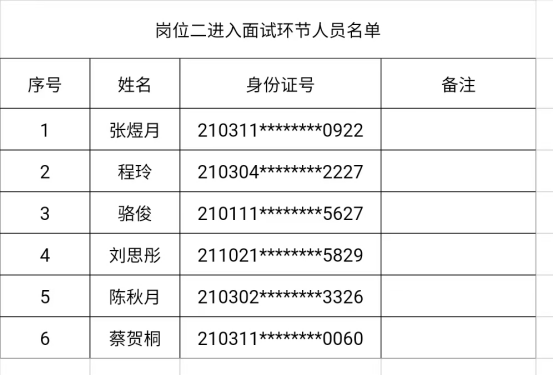 岗位二进入面试环节人员名单: