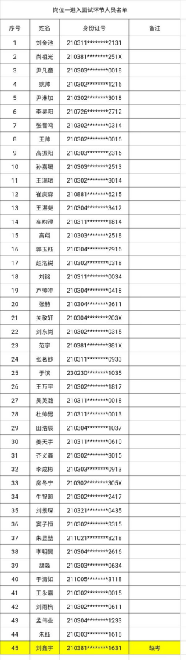 岗位一进入面试环节人员名单: