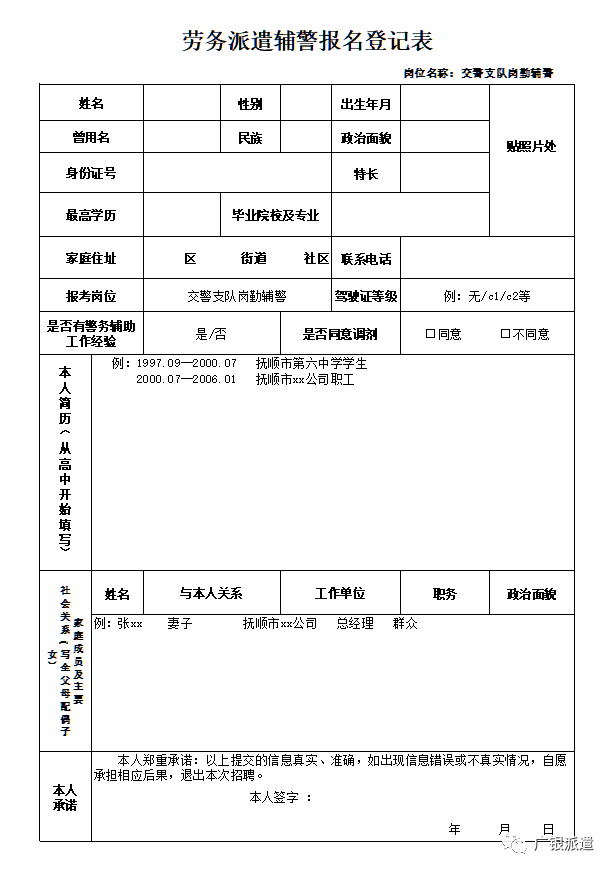 3.报名者自行下载附件上的报名登记表,填好后打印并粘贴上近期一寸正面免冠彩色照片,应聘人员自报名到聘用公示期间应确保报名时所填报的通讯工具畅通,因所留通讯方式不畅所导致的后果由考生自负。