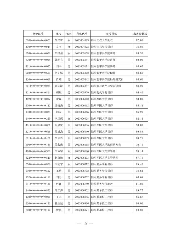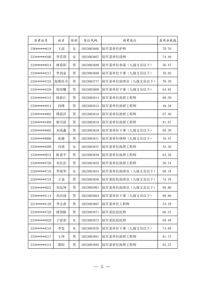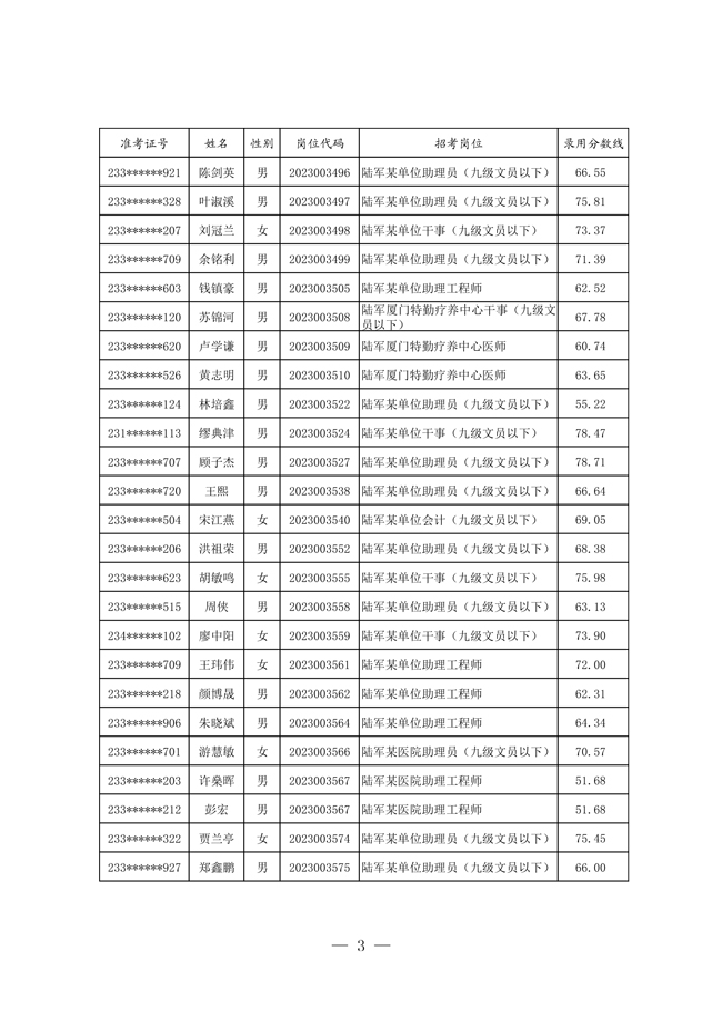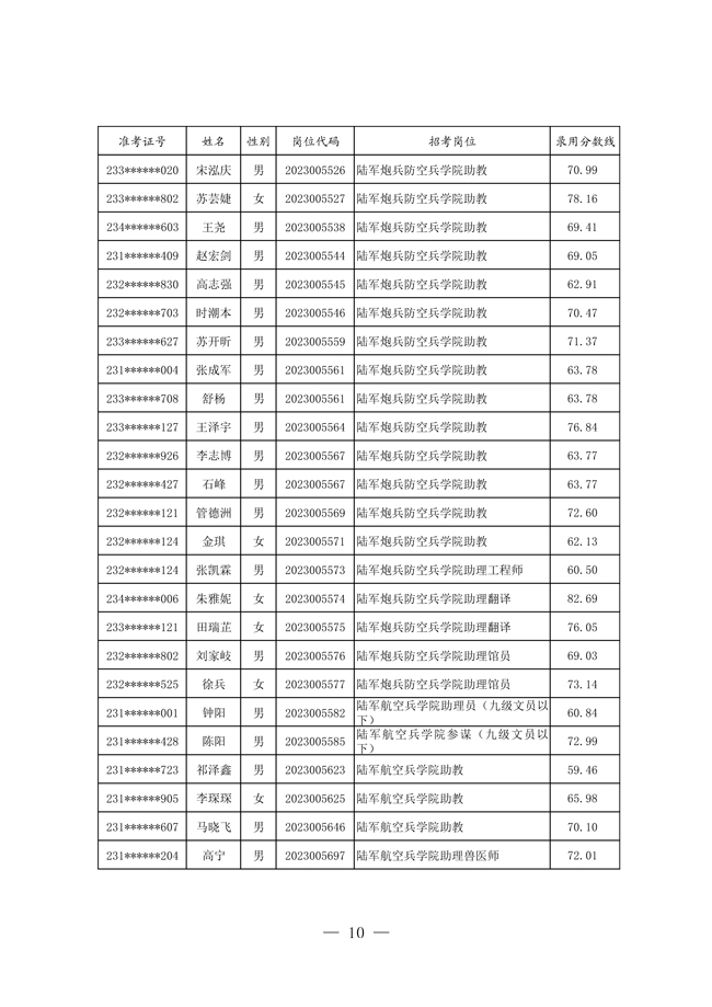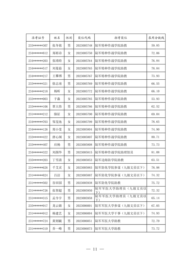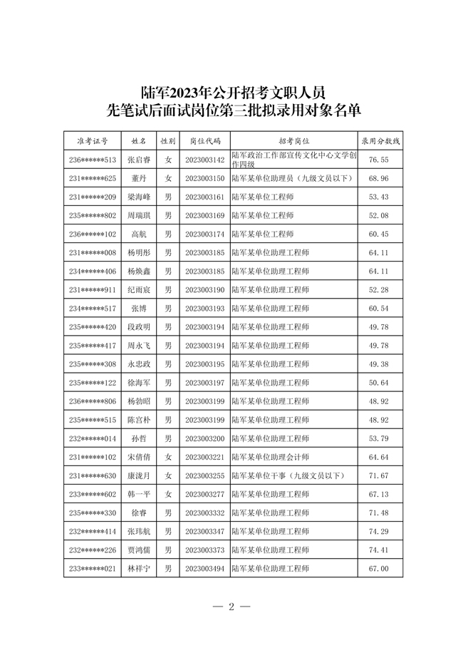 公示陆军2023年公开招考 文职人员第三批拟录用对象名单