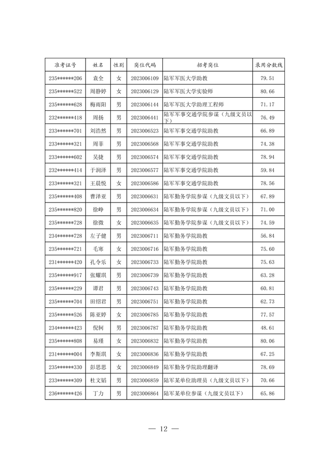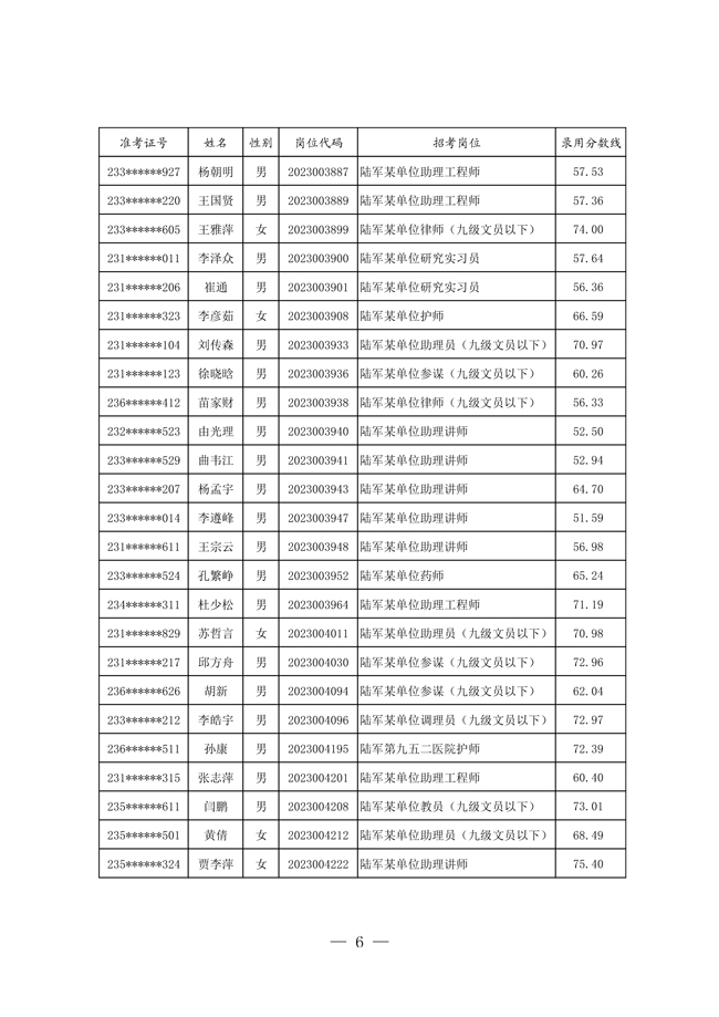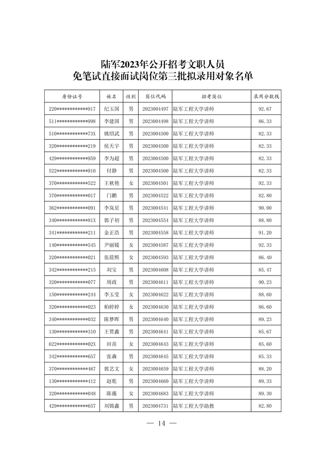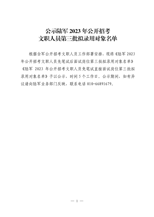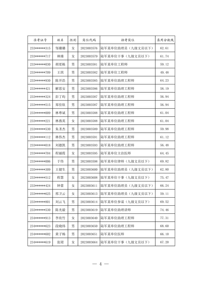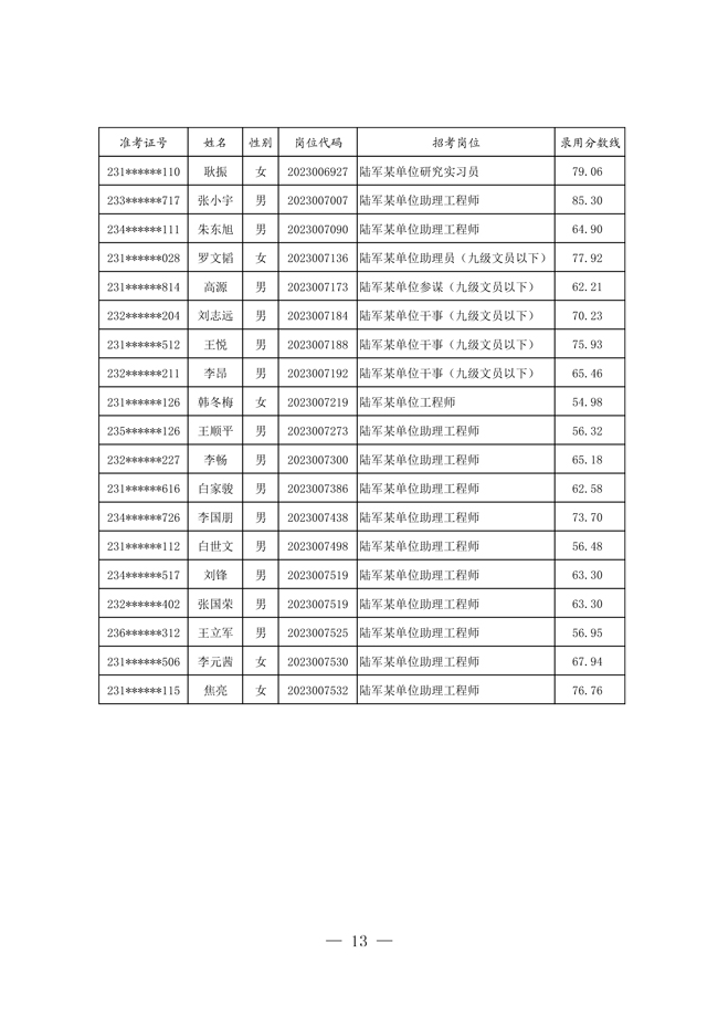 公示陆军2023年公开招考 文职人员第三批拟录用对象名单