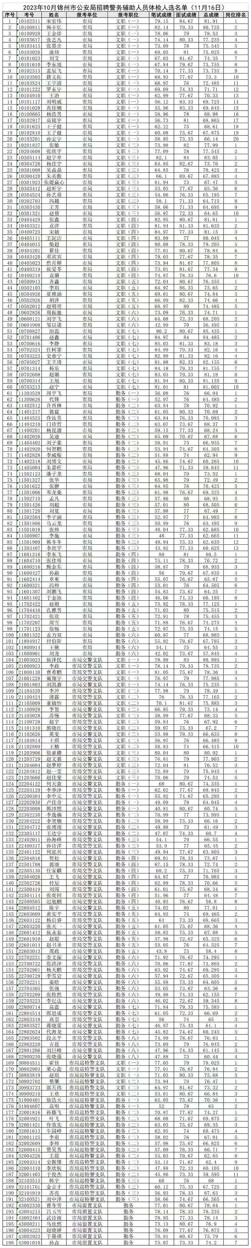 附件:2023年10月锦州市公安局招聘警务辅助人员体检人选名单(11月16日)