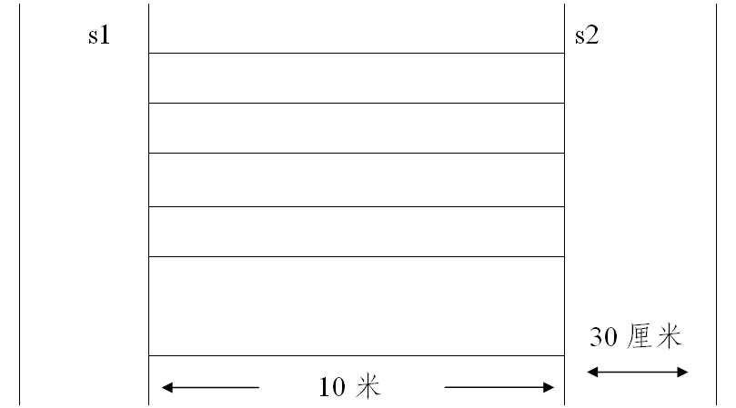 测试方法为:受测者用站立式起跑,听到发令后从S1线外起跑,当跑到S2线前面,用手碰倒一个标识物随即往回跑,跑到S1线前时再用手碰倒一个标识物,再跑回S2用手碰倒另一个标识物,最后折返冲过S1线,记录跑完全程的时间。记录以秒为单位,取一位小数,第二位小数非“0”时则进1。